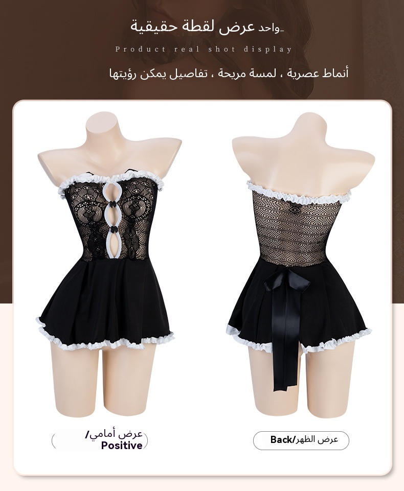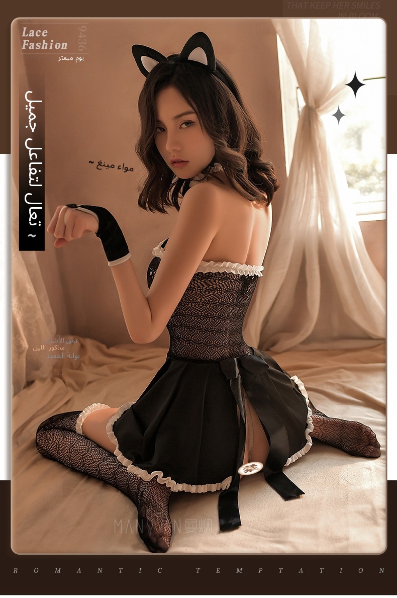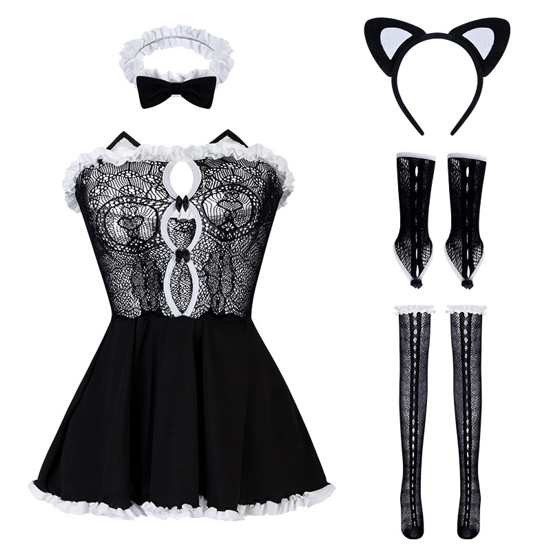 الرجل الدخان جنسي الملابس الداخلية جنسي الدانتيل مسح الثدي منظور لطيف قليلا خادمة القط تنورة النوم مجموعة 9436