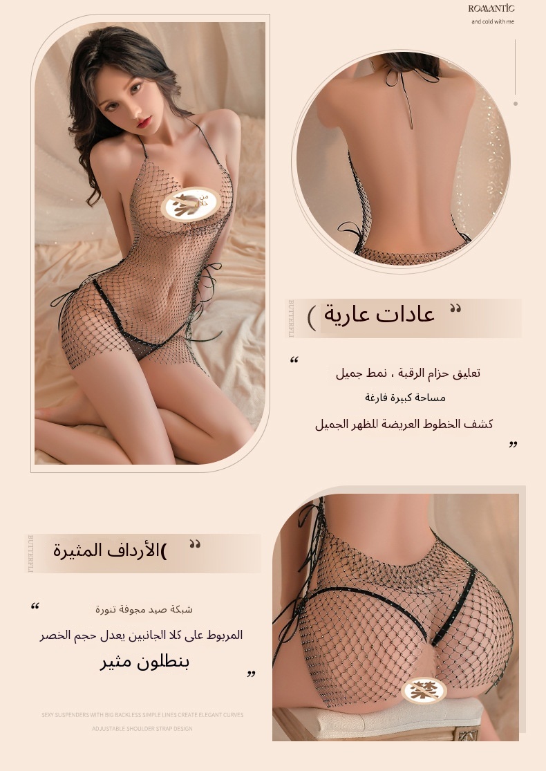 رجل الدخان الملابس الداخلية جنسي معلق العنق التعادل فلاش الطوب شبكة صيد السمك جوفاء النوادي الليلية تنورة قصيرة موحدة تناسب 1801