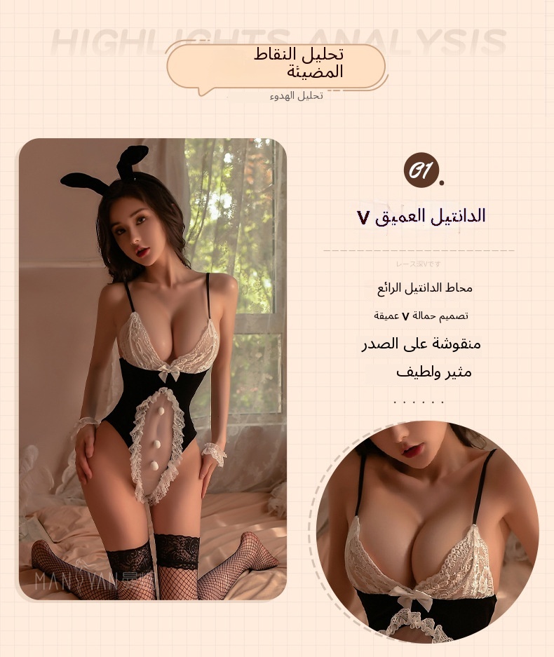 رجل الدخان جنسي الملابس الداخلية الدانتيل جنسي عميق v-perspective سلكين مجوف زي أرنب فتاة موحدة تناسب 9552