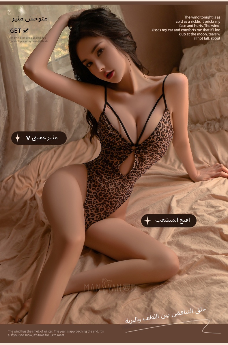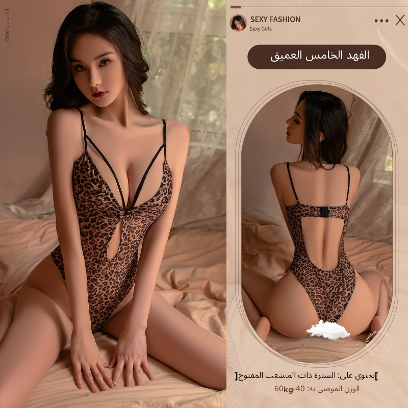 رجل الدخان جنسي الملابس الداخلية جنسي عميق الخامس ليوبارد طباعة زر الملابس الجاهزة زي مجموعة جوفاء 9691