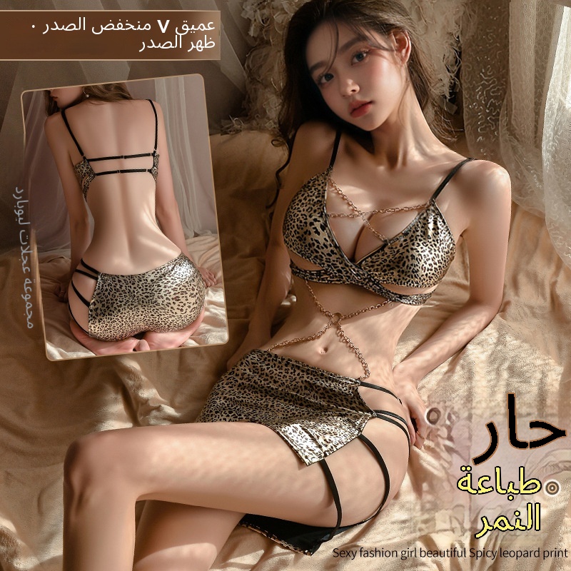 رجل الدخان جنسي الملابس الداخلية جنسي عميق الخامس انخفاض الثدي مشرق ليوبارد طباعة نوادي الرقص الملكة زي مجموعة 9544
