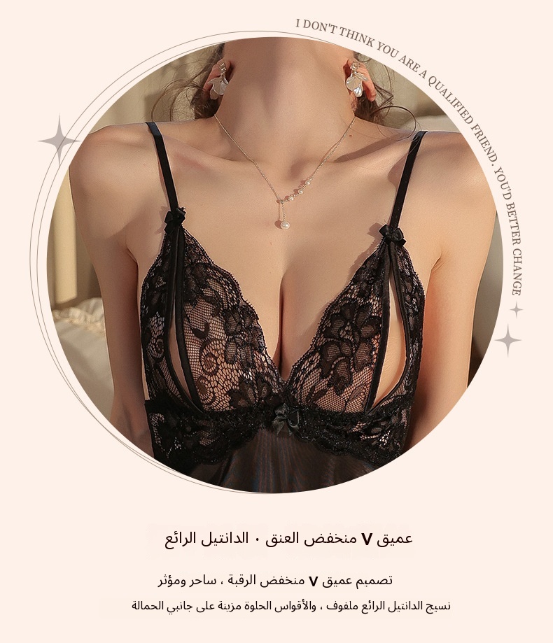 رجل الدخان جنسي ملابس داخلية نسائية مثير الصدر جوفاء الدانتيل الساخن شفافة مفتوحة حمالة ثوب النوم 9815