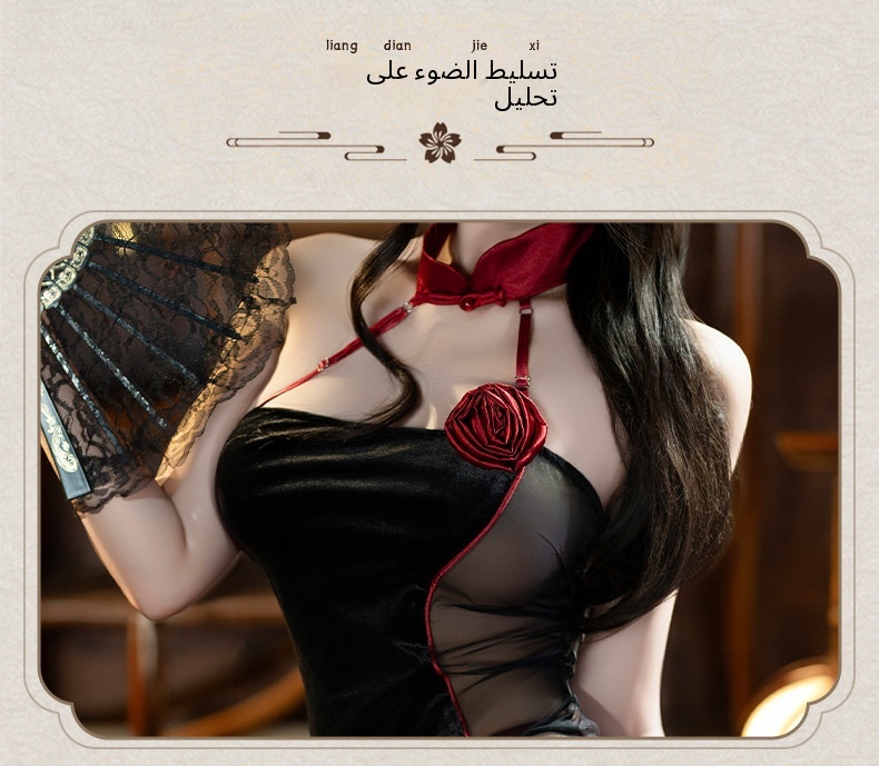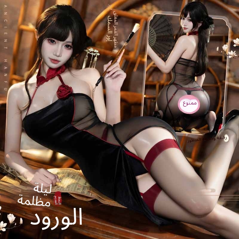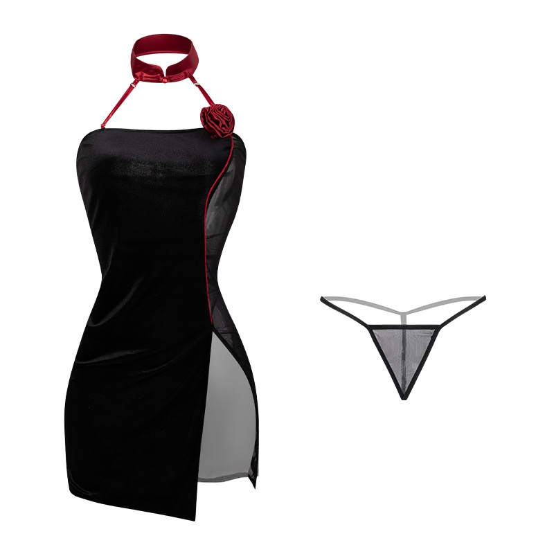 رجل مثير الملابس الداخلية النسائية مثير قلادة قلادة مشبك منظور الجمال مرة أخرى روز شق شيونغسام موحدة 100272