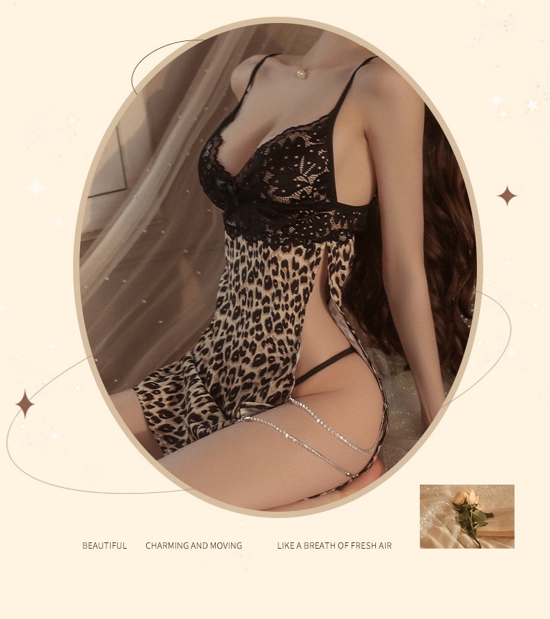 رجل يدخن جنسيّ ملابس داخليّة مثير حمالة شريط شريط عال الخصر شوكة نمر طباعة ثوب النوم زي مجموعة 9688