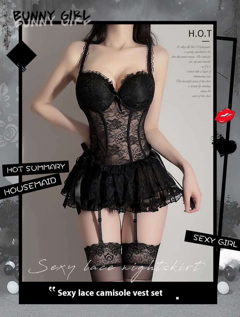 Manyan sexy lingerie sexy lace gathered steel support camisole skirt slim fit vest fluffy princess skirt 9937