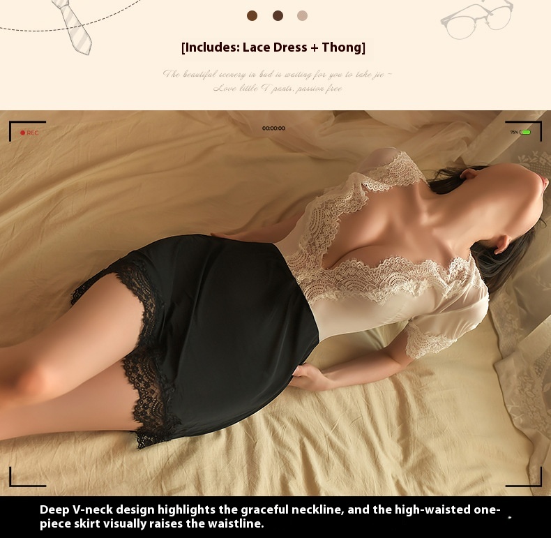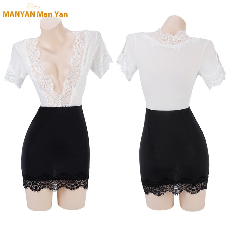Be the first to review “Manyan sexy lingerie sexy lace perspective deep v secretary bag hip skirt uniform set hair replacement 8568” Cancel reply