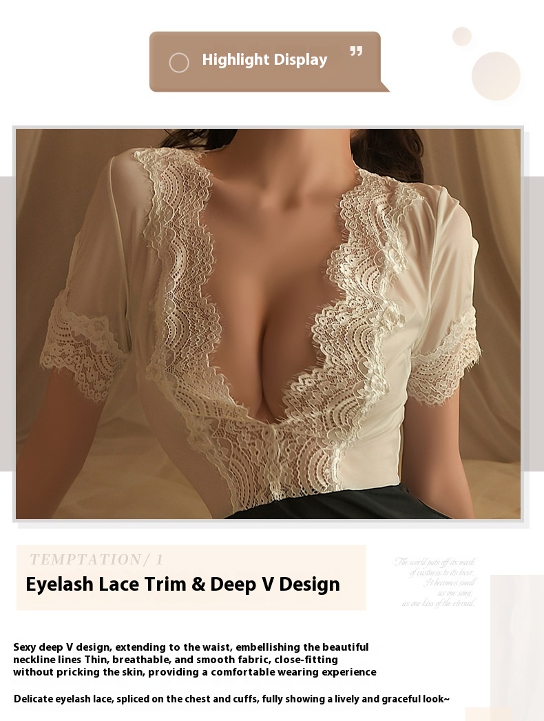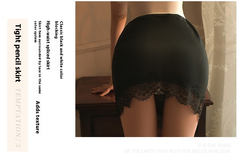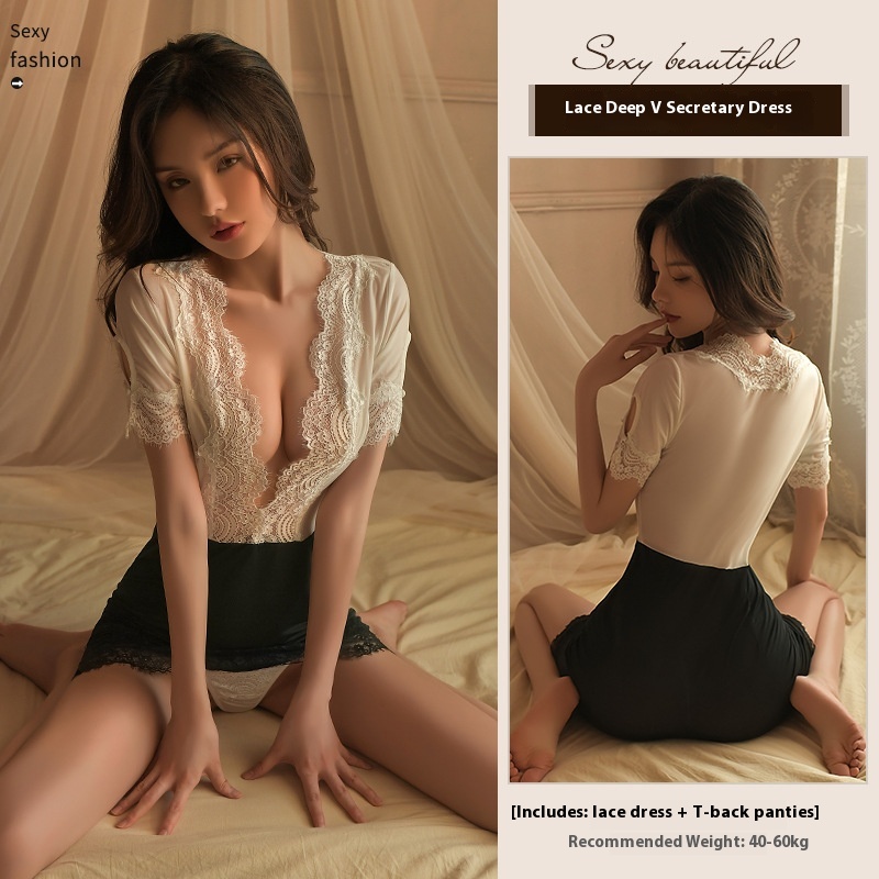 Manyan sexy lingerie sexy lace perspective deep v secretary bag hip skirt uniform set hair replacement 8568