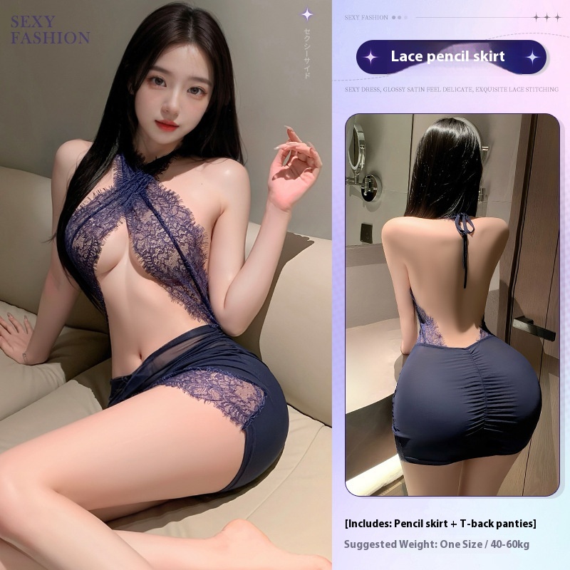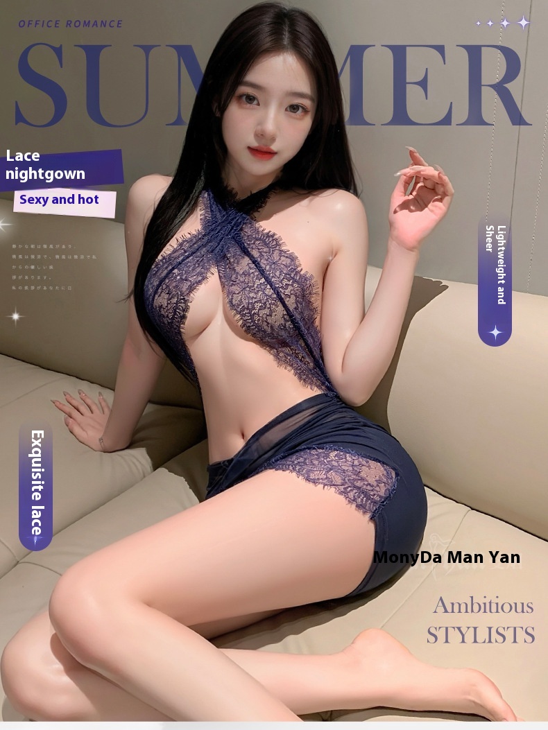 Manyan sexy lingerie women sexy tight neck hanging lace secretary uniform soft gauze wrapped buttocks skirt nightgown 100499