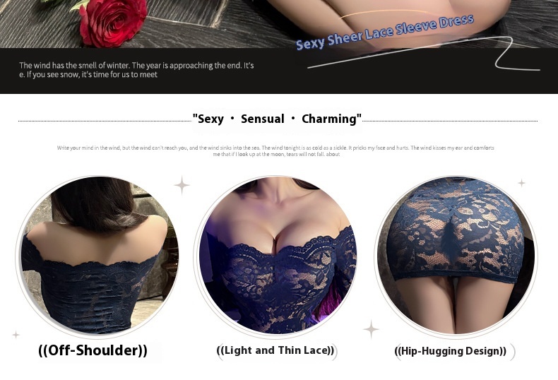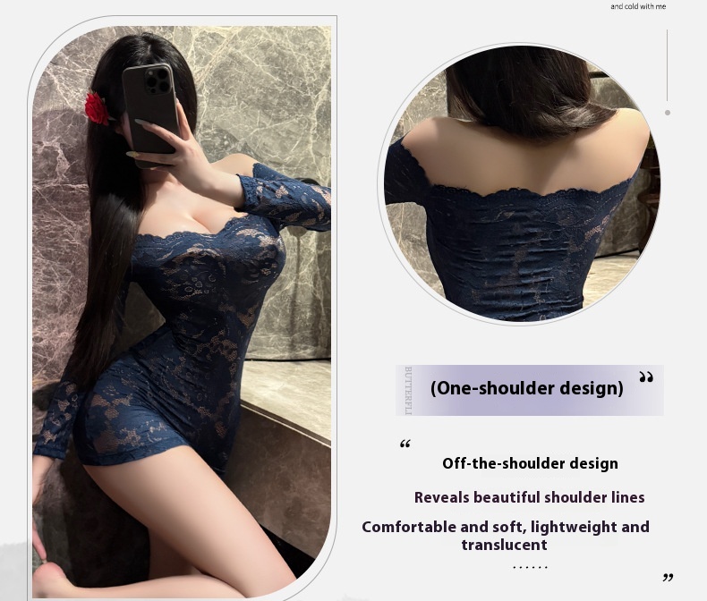 Manyan sexy lingerie women’s lace wrapped hip skirt uniform sexy one shoulder see through hot secretary set 100217
