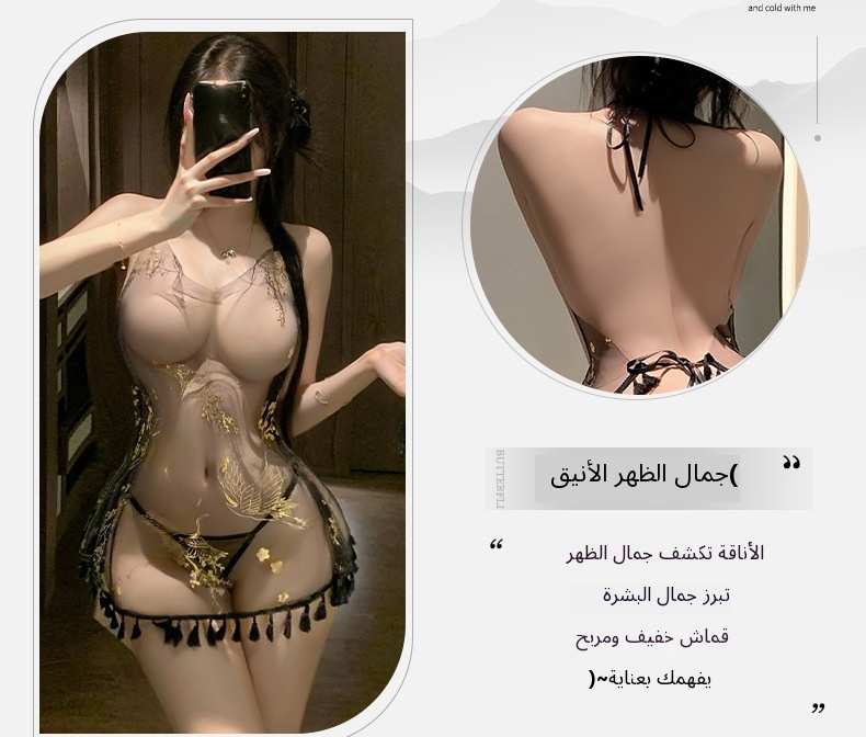 Be the first to review “Manyan sexy lingerie women’s sexy hanging neck suspender see through nightgown lace up slit beautiful back soft gauze skirt 100596” Cancel reply