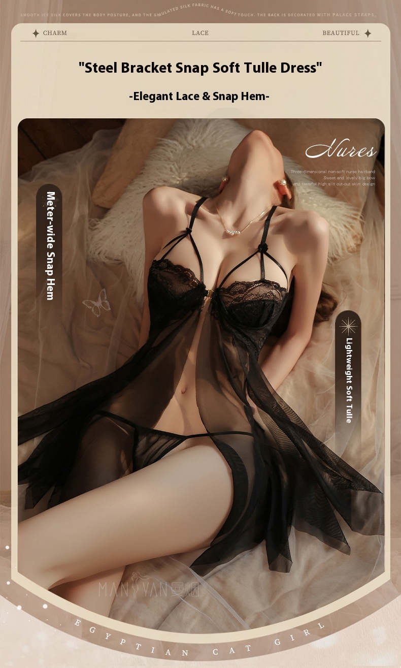 Men’s Smoking Sexy Lingerie Women’s Sexy Steel Support Gathering Half Hollow Perspective Soft Screen Sleeping Hole Pyjama Skirt 9273