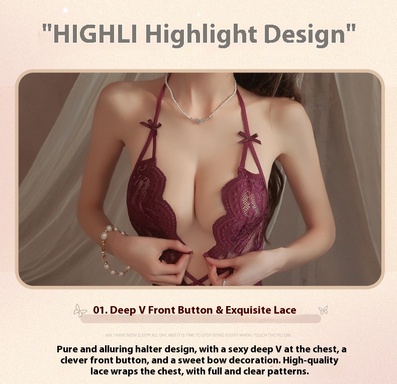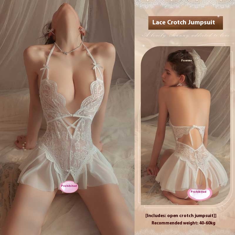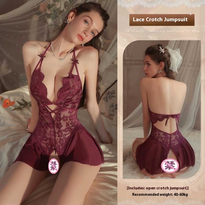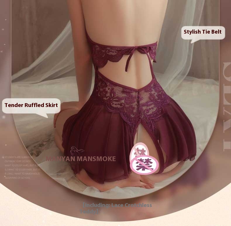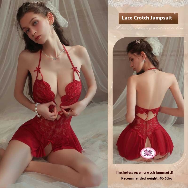 Sexy man sexy beauty lingerie back hanging neck open front split lace bra sleeping dress