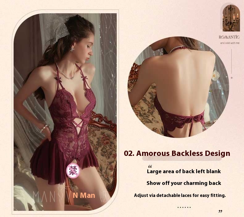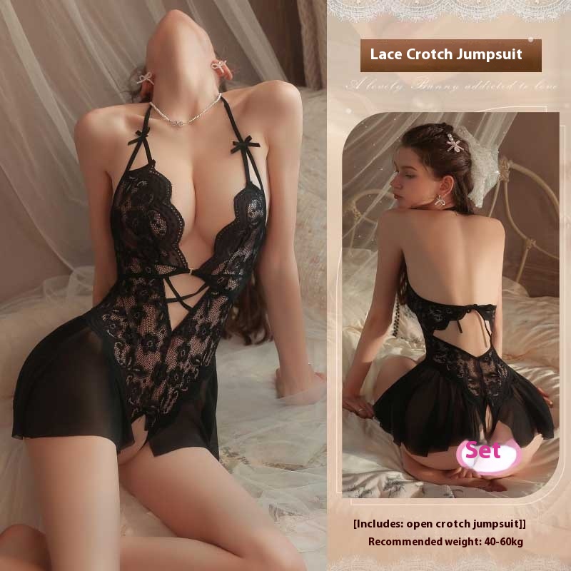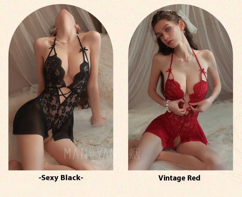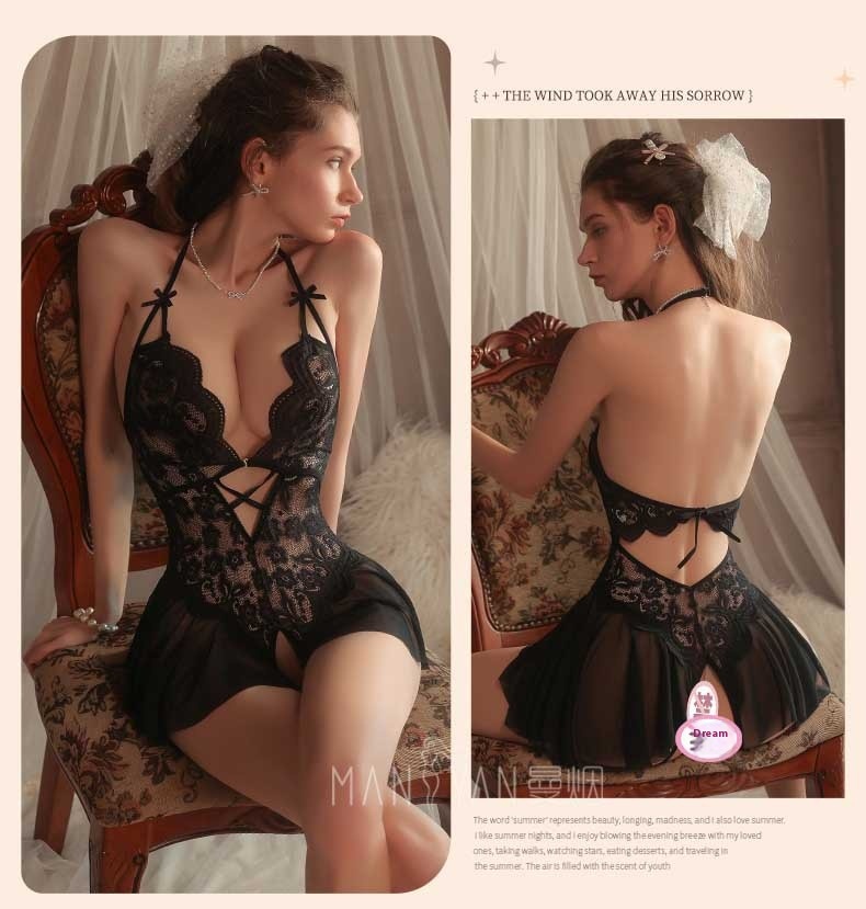 Be the first to review “Sexy man sexy beauty lingerie back hanging neck open front split lace bra sleeping dress” Cancel reply