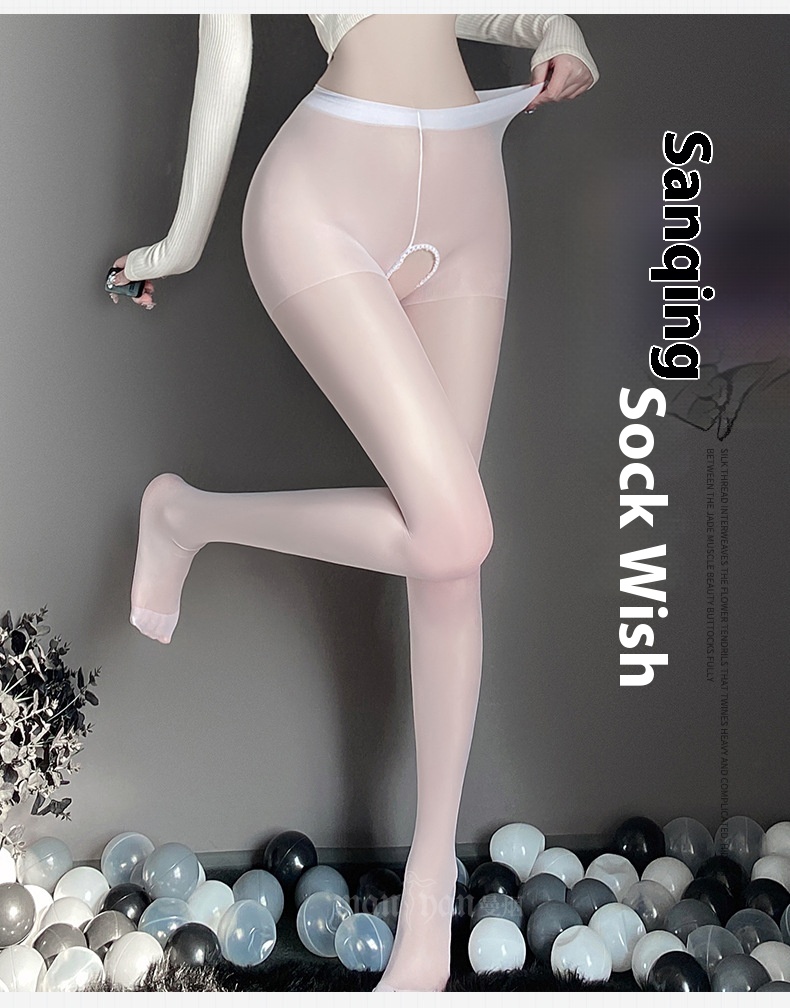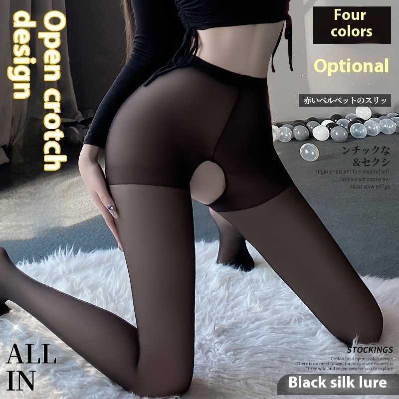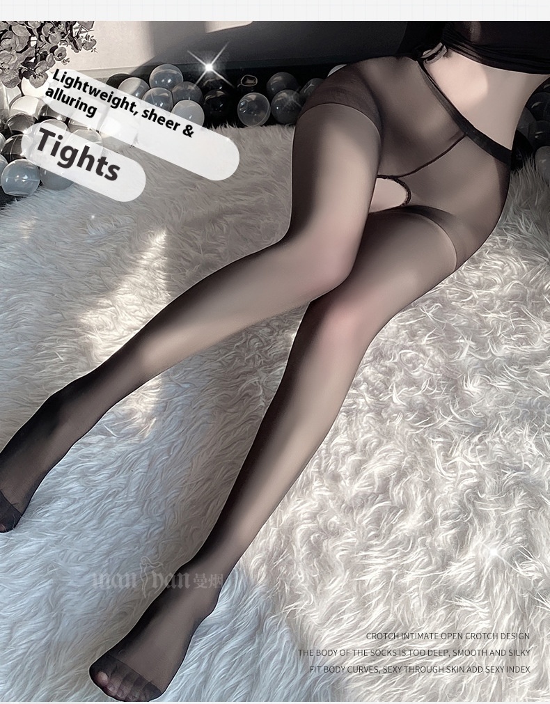 Sexy Man Sexy Lingerie Black Silk Perspective Two Side Open Pants Long Stockings Sexy Tube Silk Stockings 7001