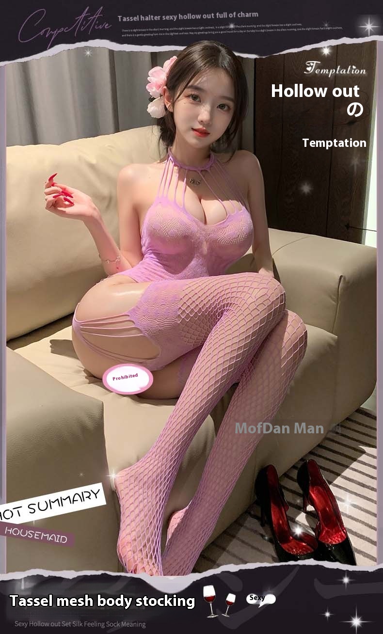 Be the first to review “Sexy Man Sexy Lingerie Drink Hollow Perspective Opening Split Hanging Neck Wave Point Mesh Clothing Silk Stockings 700003” Cancel reply