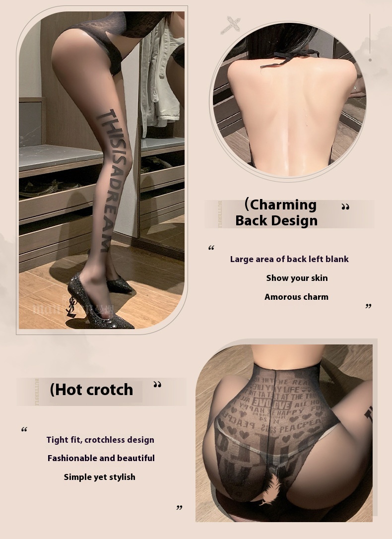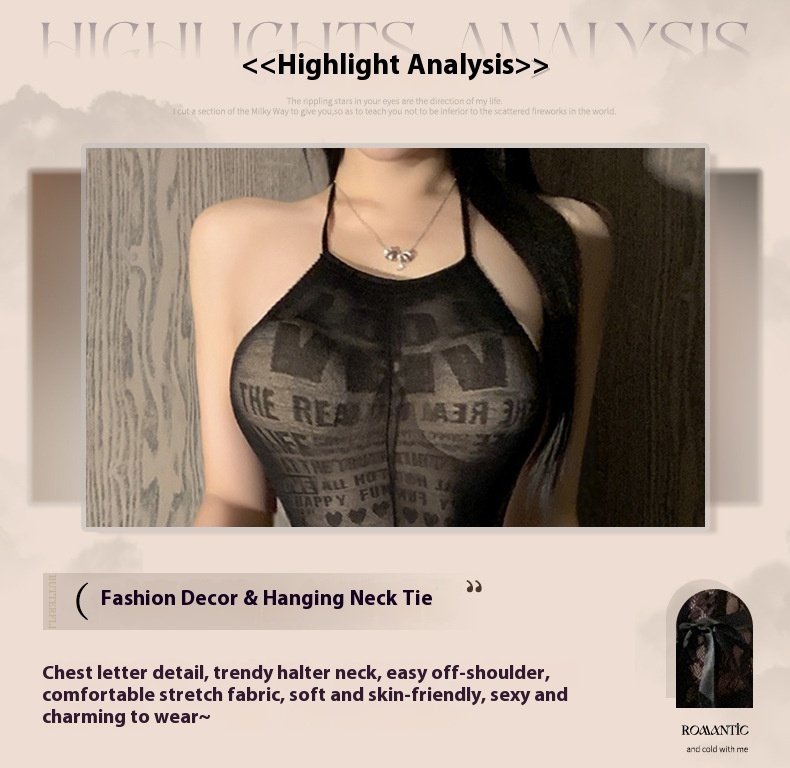 Sexy Man Sexy Lingerie Hanging Neck Perspective Black Silk Tie Message Ripped Silk Stockings Open
