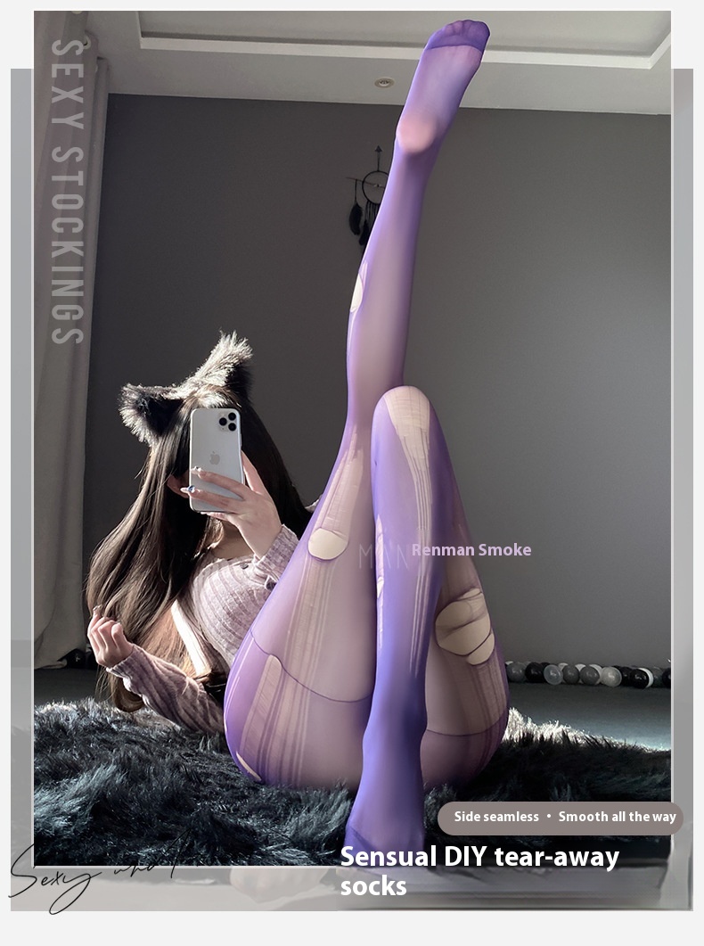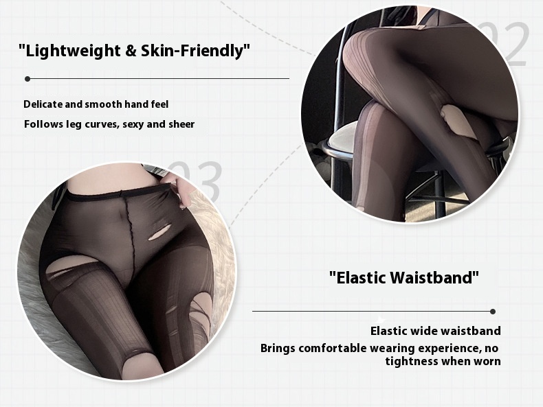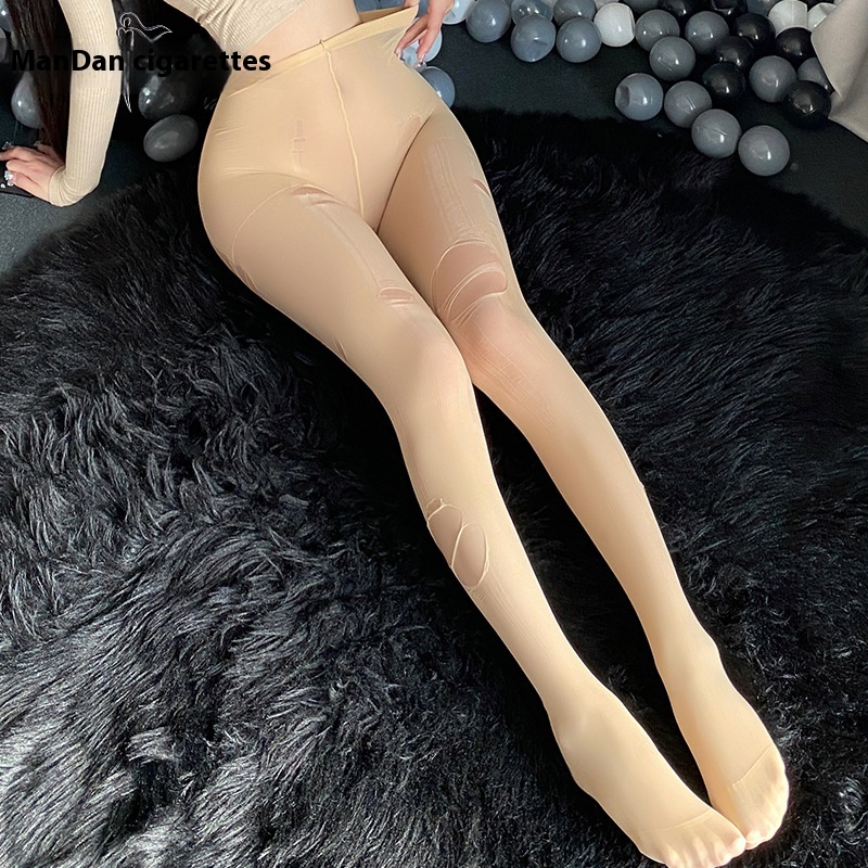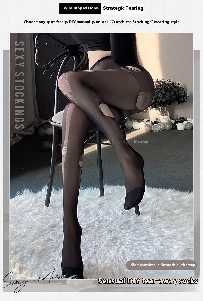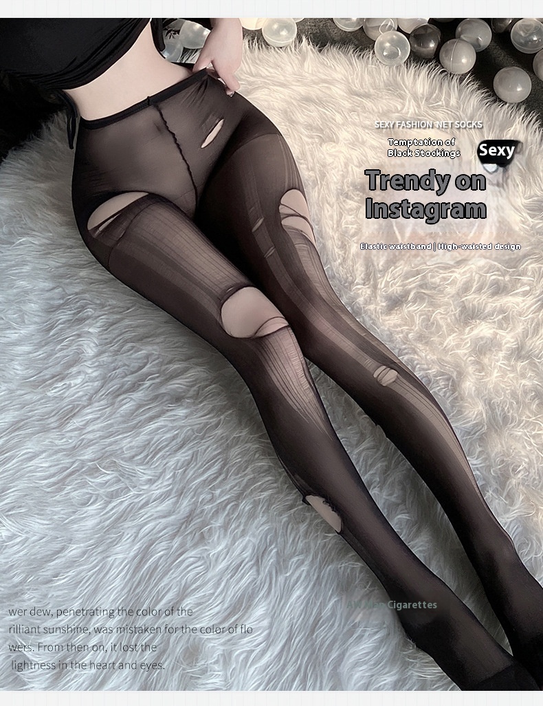 Sexy Sexy Man Sexy Silk Stockings Fragile Ripped Silk Stockings Hollow Hole Waist Long Hair Stockings 7230
