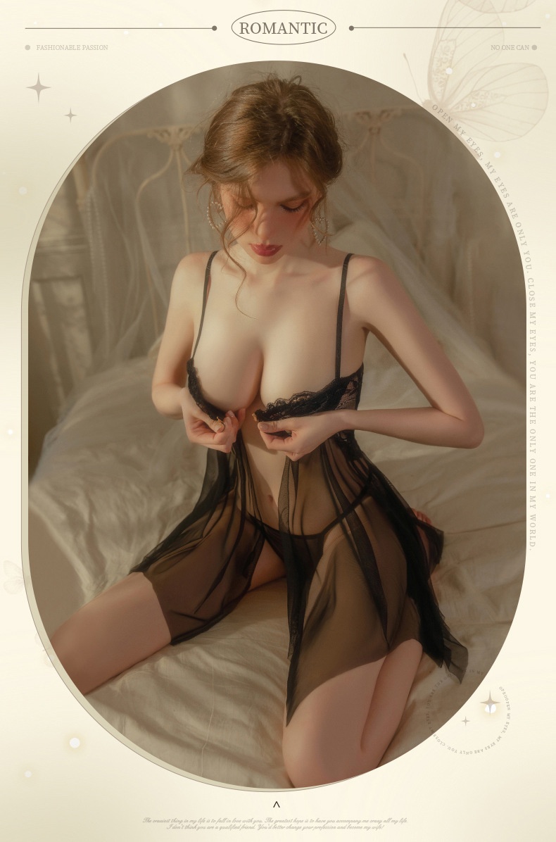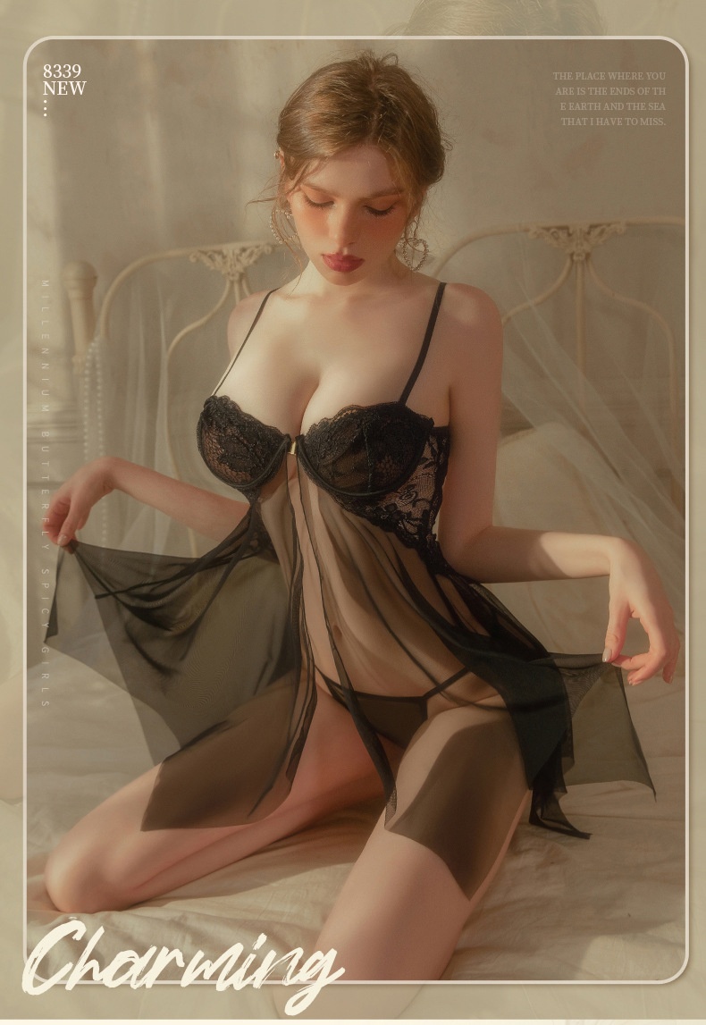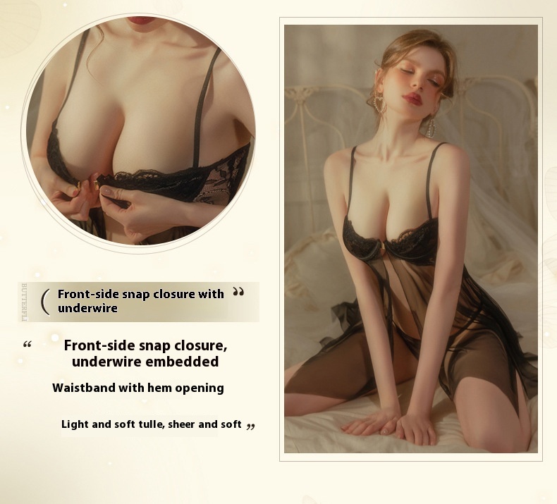 Sexy Smoking Man Lingerie Lace Sexy Perspective Solid Bra Front Support Open Sleep Button Set 8339