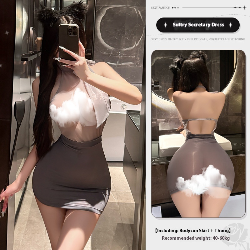 Sexy smoking man Lingerie woman sexy piercing tight waist bag skirt edge