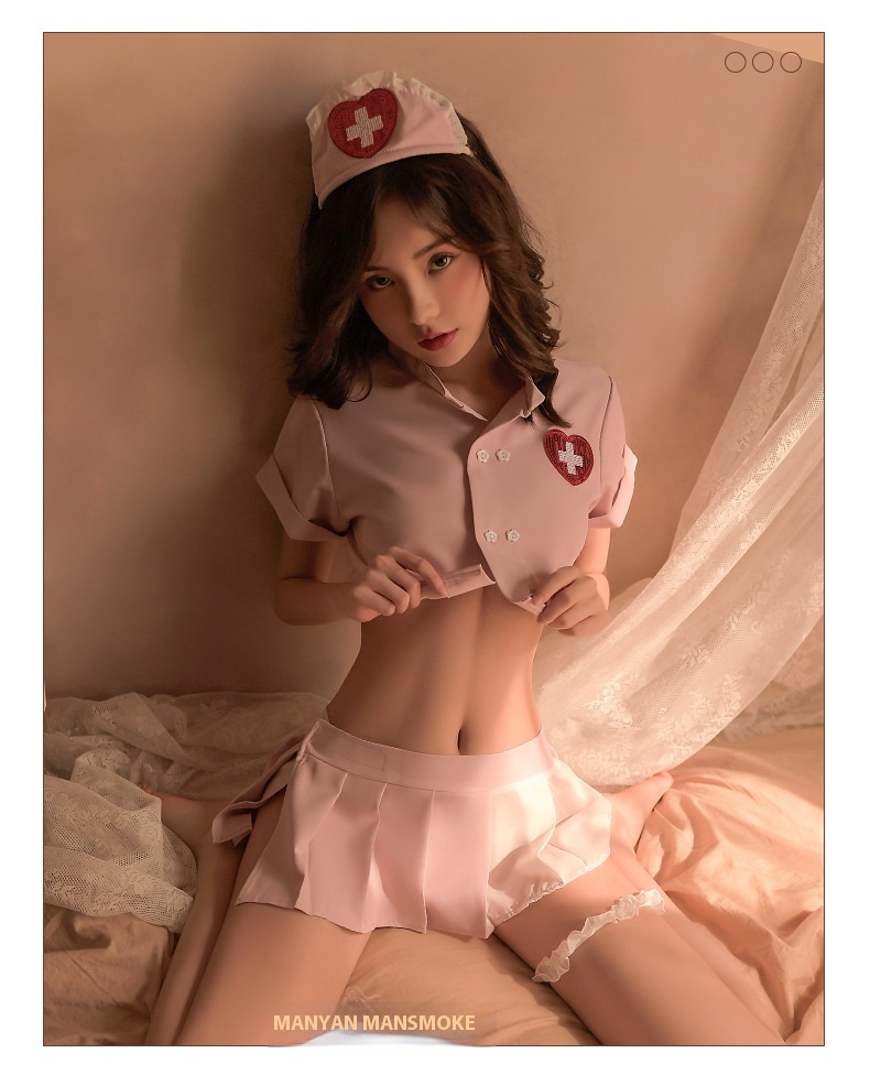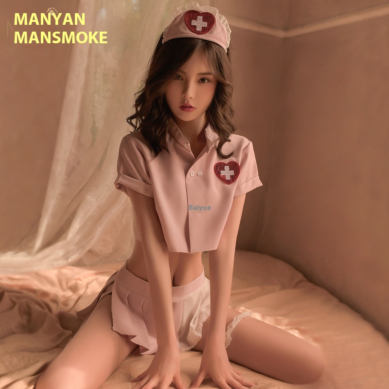 Sexy smoking man Sexy cute feminine lingerie perspective folded skirt jacket nurse uniform fit