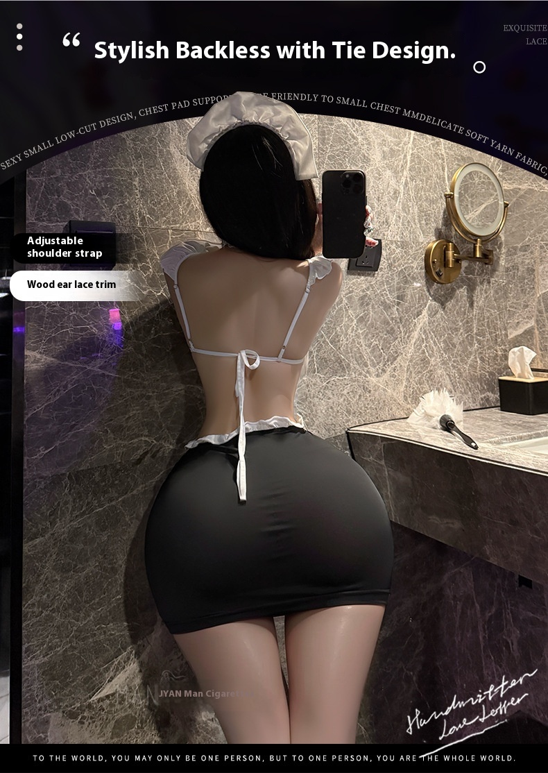 Sexy Smoking Man Sexy Lingerie Fifth Deep Heels Skirt Secret Opening Ripped Pure Maid Uniform 100556