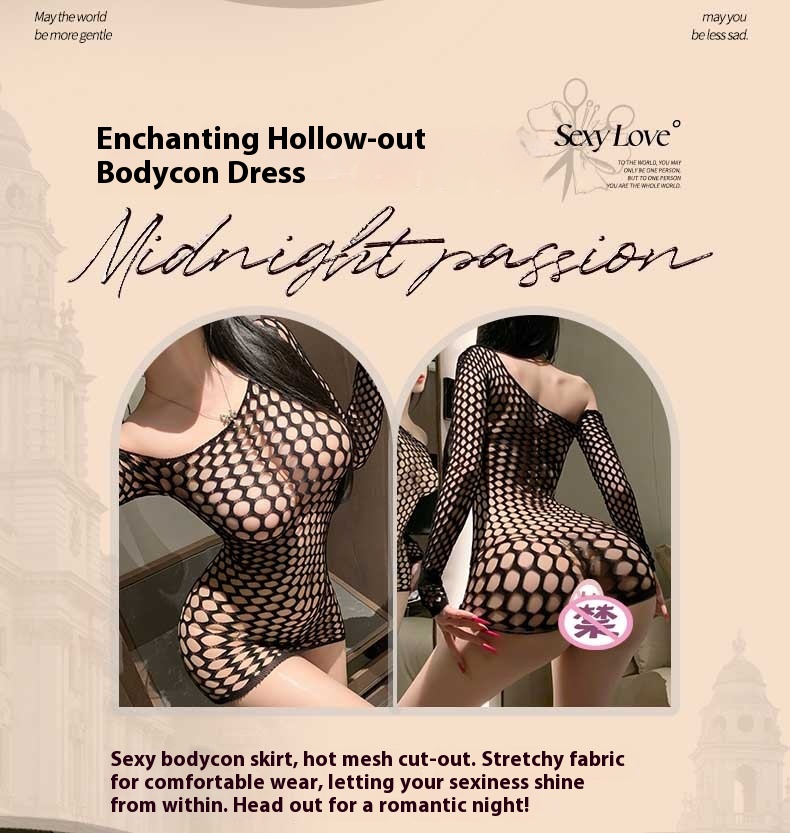 Sexy smoking man Sexy lingerie Mesh hollow slanted shoulder bag heels skirt stretch mesh slimming silk socks