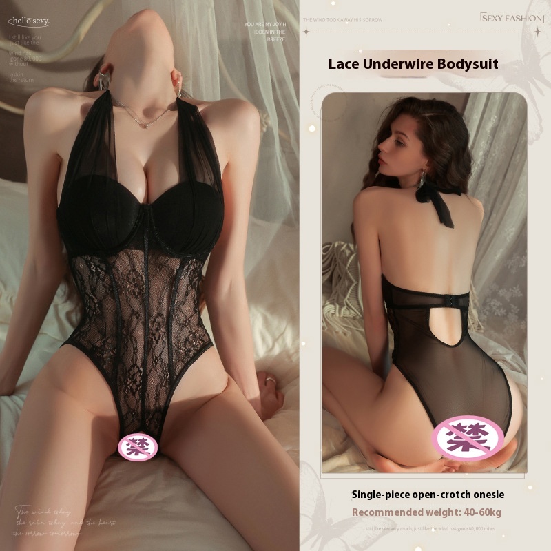Smoking Man Sexual Lingerie Female Sexual Tight Lace Steel Support Split Neck Assembly Open Ready Clothes Sleepwear 100374