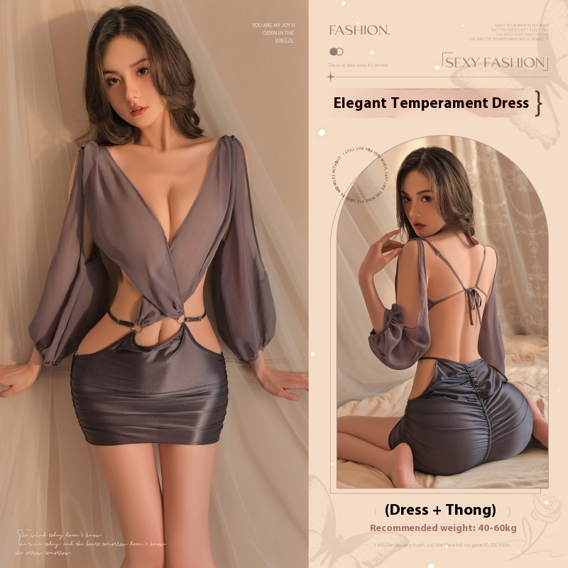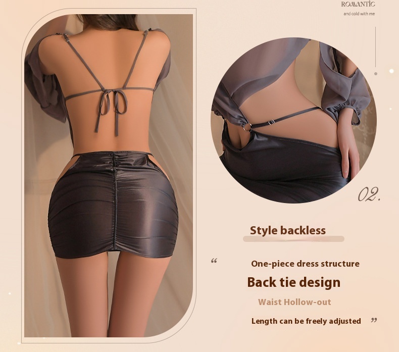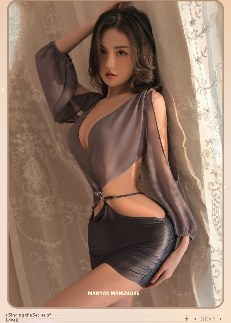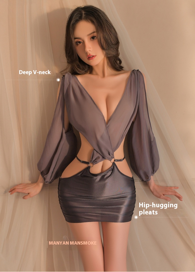Smoking man sexy lingerie deep sexual v-perspective side open waist goddess club secretary uniform suit 8934