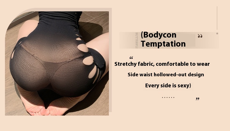 Smoking Man Sexy Lingerie Female Sexy One-letter Shoulder Hip Bag Skirt Hollow Perspective Uniform Socks 7079