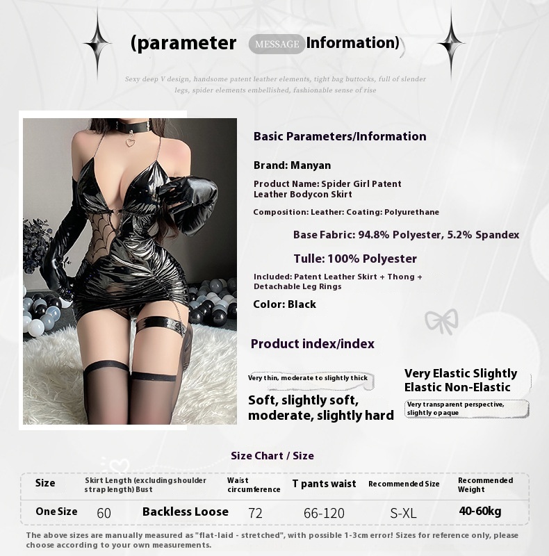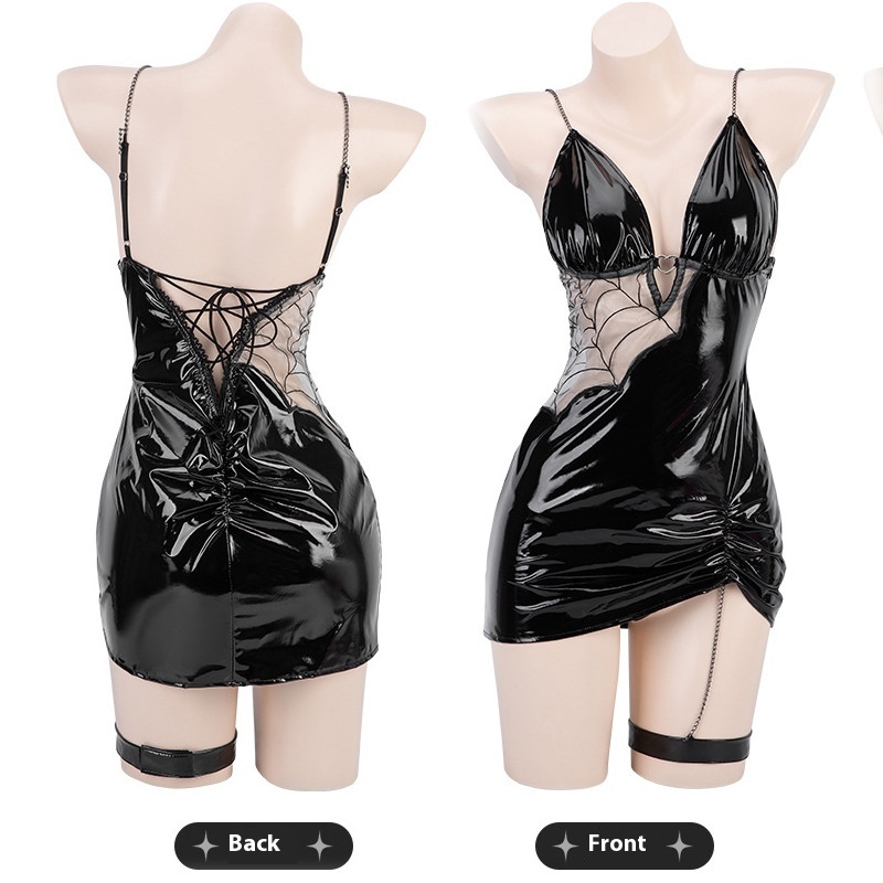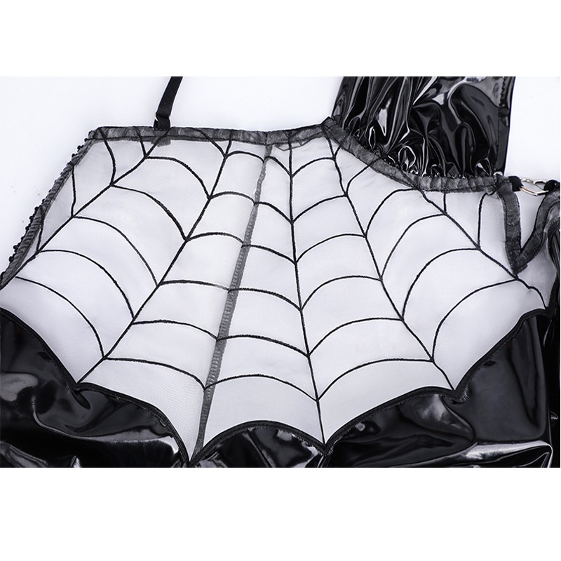 Smoking Man Sexy Lingerie Halloween Sexy Strings Spider Perspective Witch Patent And Skin Tight Heels Uniform Skirt 8919