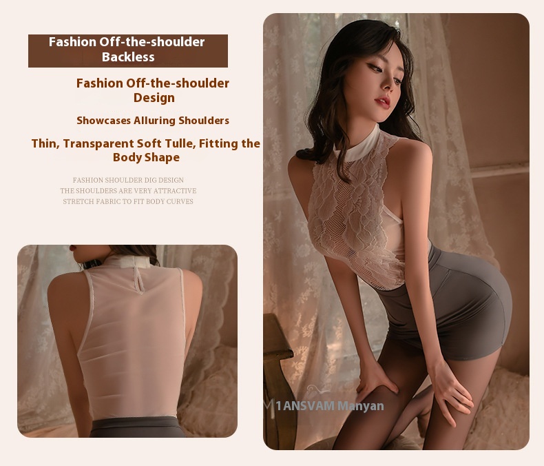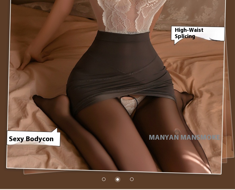 Smoking Man Sexy Lingerie Sexy Lace Pattern High Waist Perspective Sewing Professional Secretary Uniform Hip Bag 9278