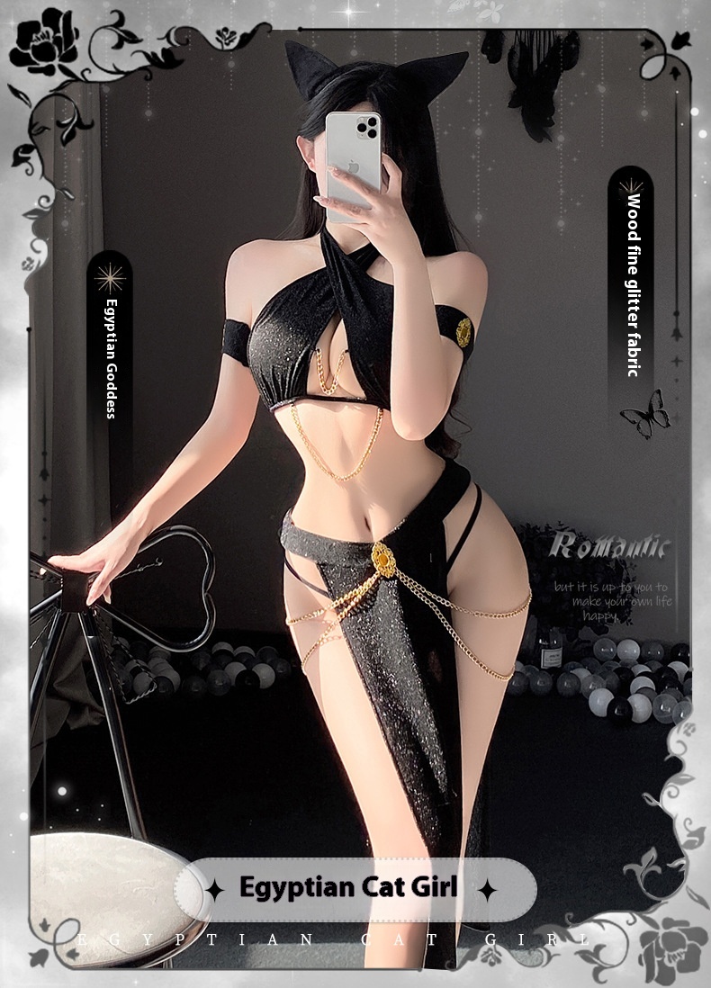 Smoking Man Sexy Lingerie Sexy Queen Fan Antique Egyptian Cat Girl Uniform Fits Hair Wholesale 8764