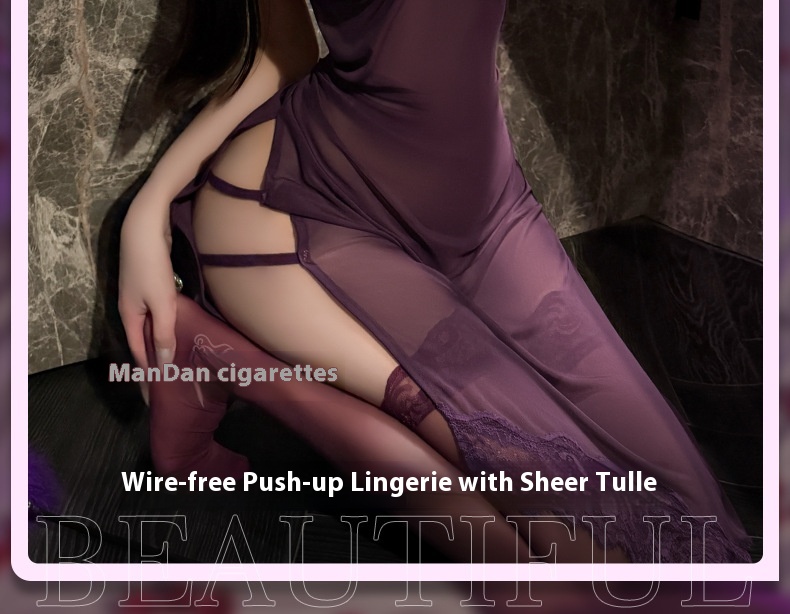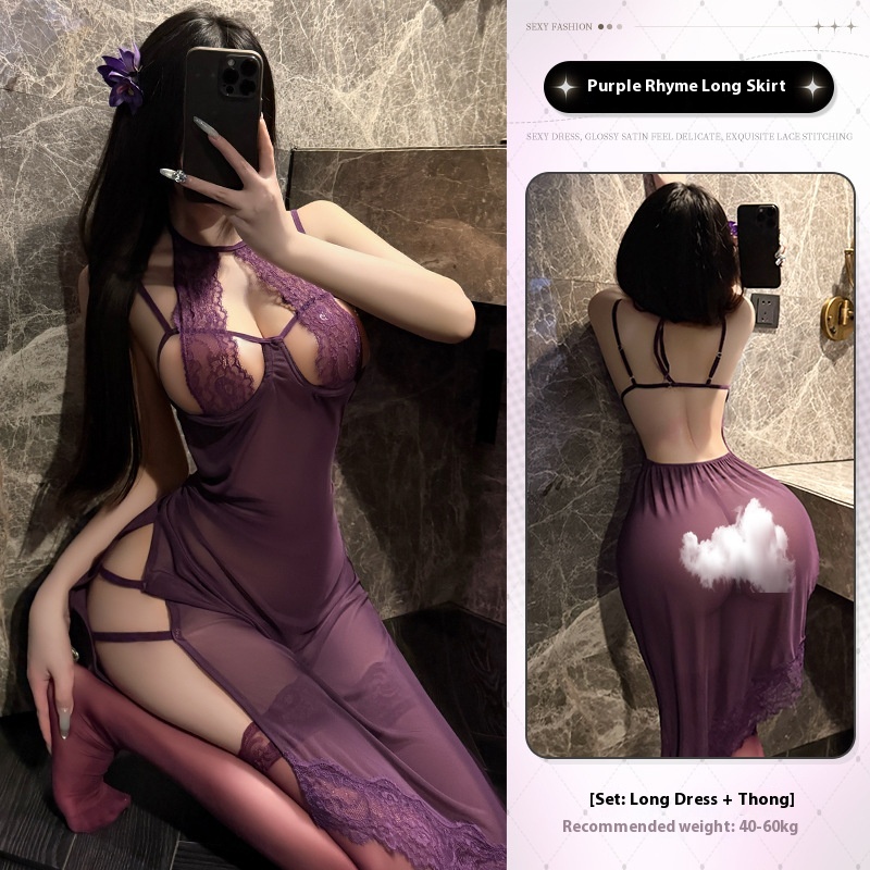 Smoking Man Sexy Lingerie Sexy Women Solid Support Long Perspective Narrow Skirt High Hole Uniform Dress 100627