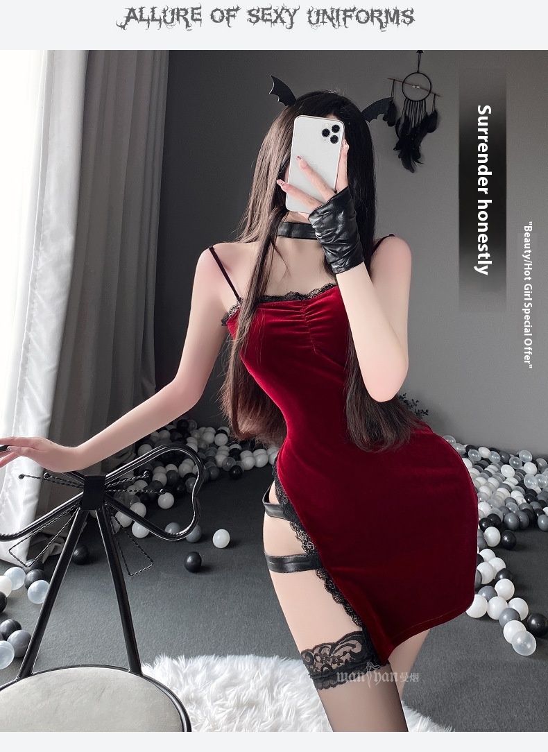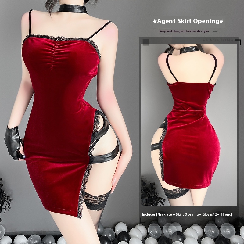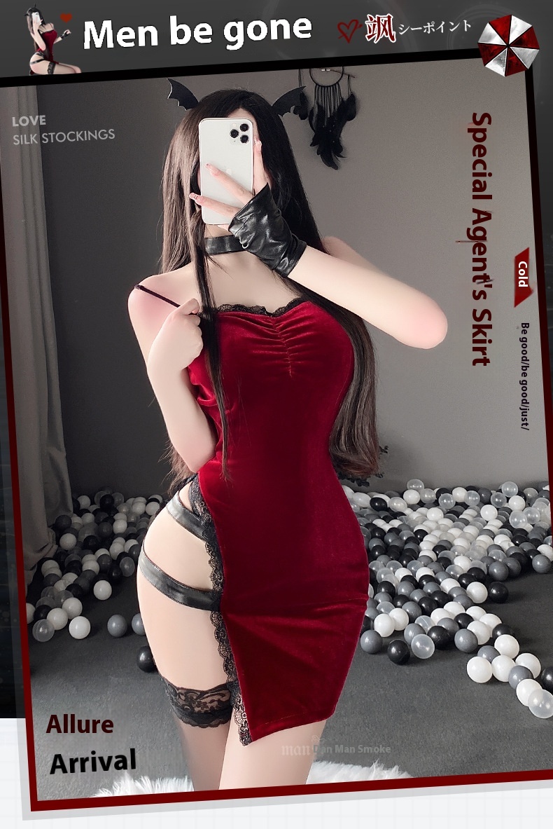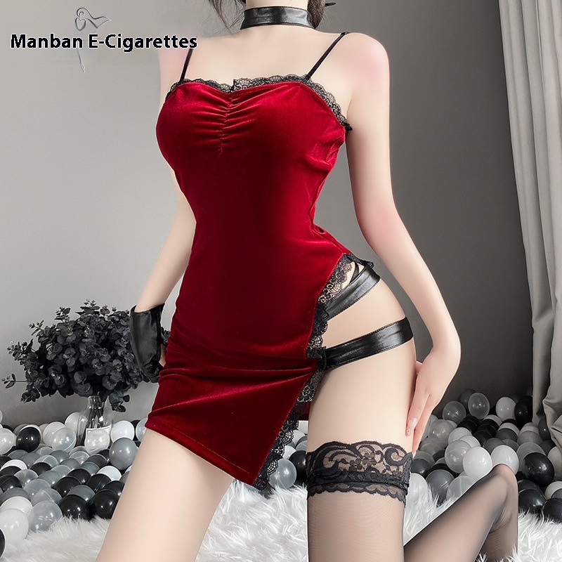 Smoking man sexy sexy lingerie bra agent high waist patent and leather tangled hollow qipao uniform fit hair 8522
