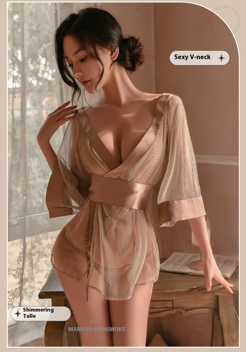 Smoking man sexy slim and shiny lingerie sexy perspective deep screen fifth folding chest jacket japanese kimono uniform jacket 9685
