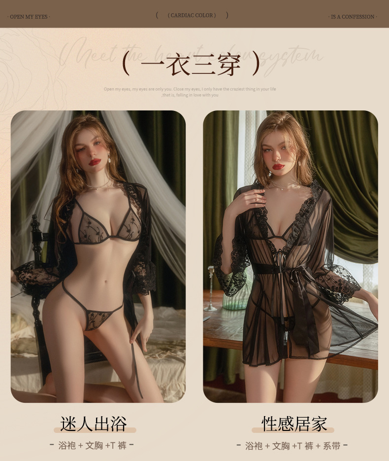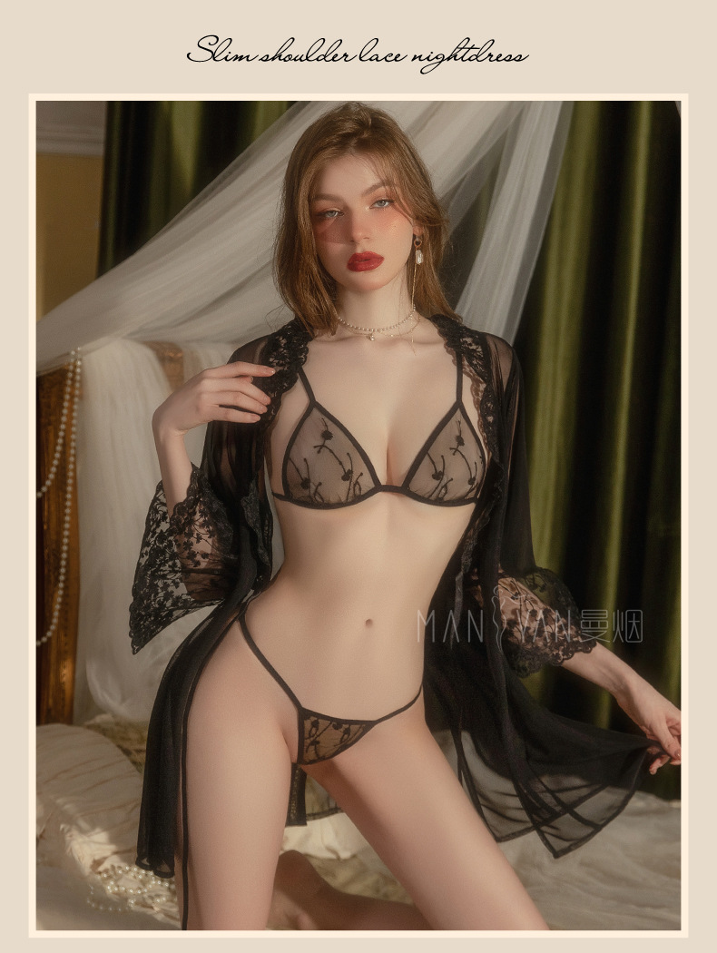 【清仓福利】曼烟情趣内衣性感蕾丝透视外罩衫三点式浴袍睡衣8948 数量
