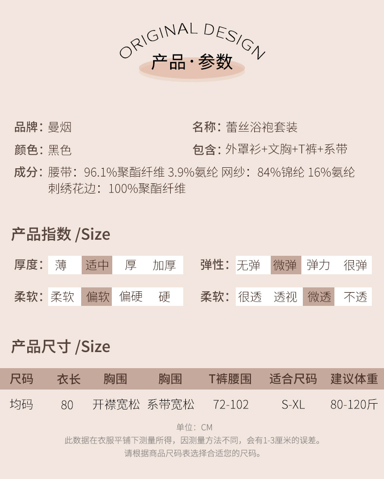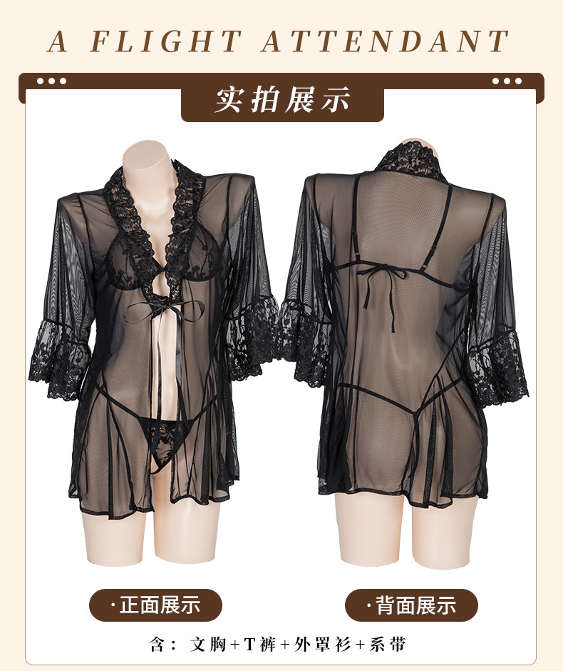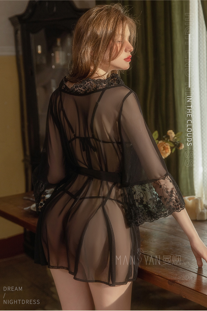 成为第一个“【清仓福利】曼烟情趣内衣性感蕾丝透视外罩衫三点式浴袍睡衣8948” 的评价者