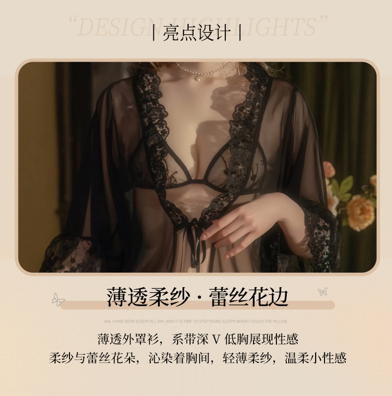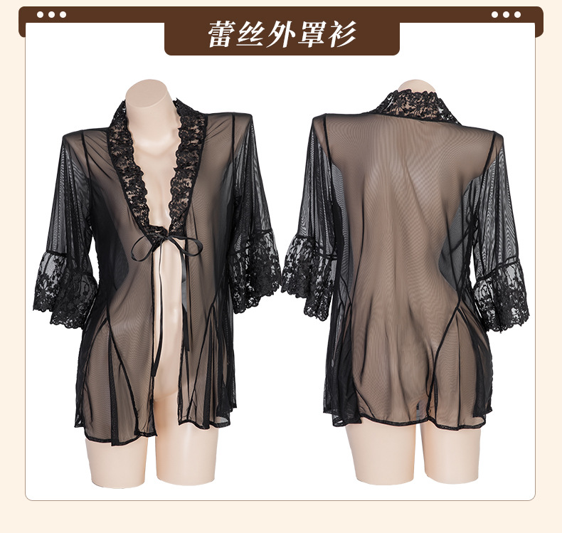 【清仓福利】曼烟情趣内衣性感蕾丝透视外罩衫三点式浴袍睡衣8948