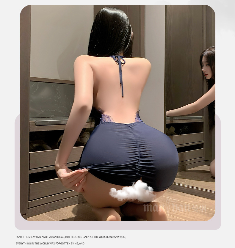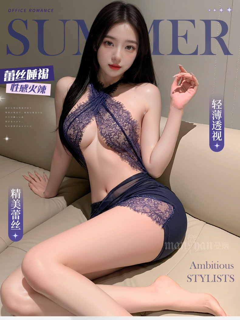 曼烟情趣内衣女性感紧身挂脖蕾丝秘书制服柔纱包臀裙睡裙100499