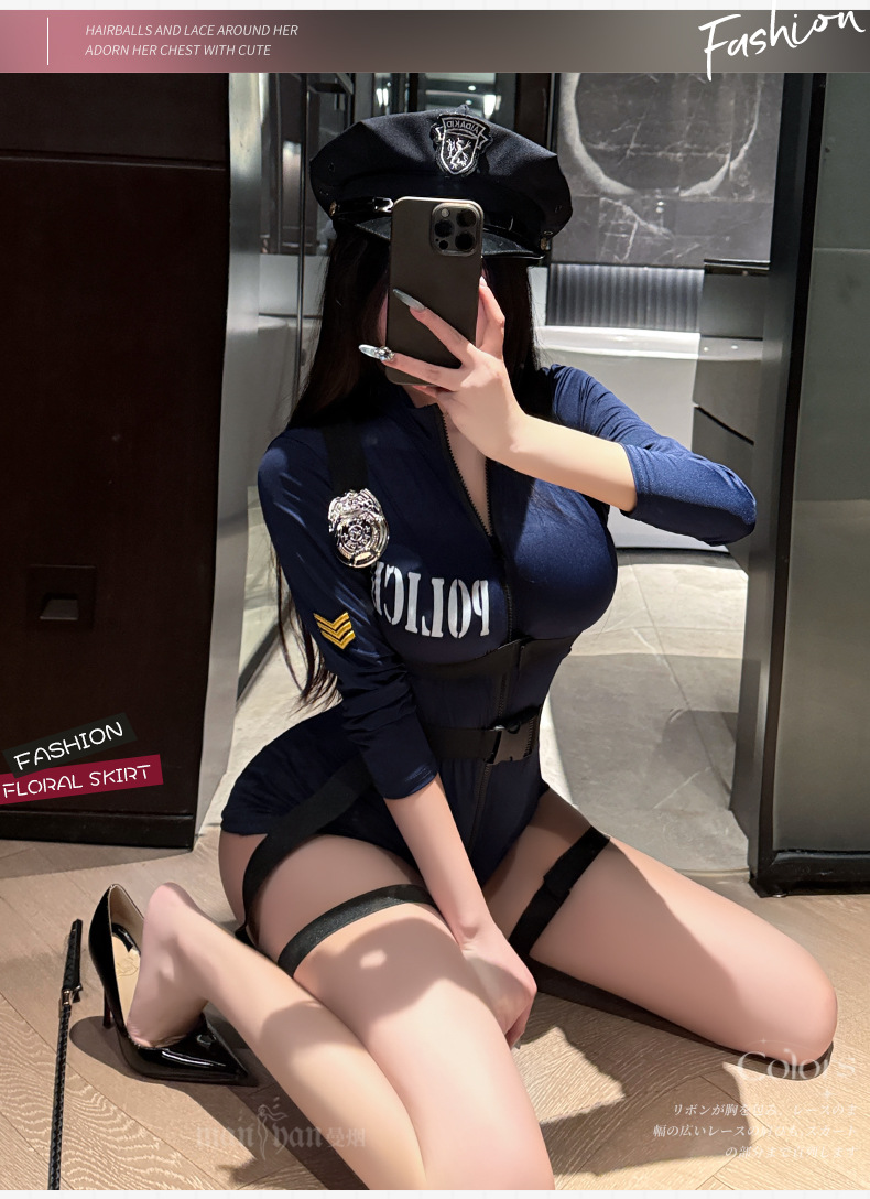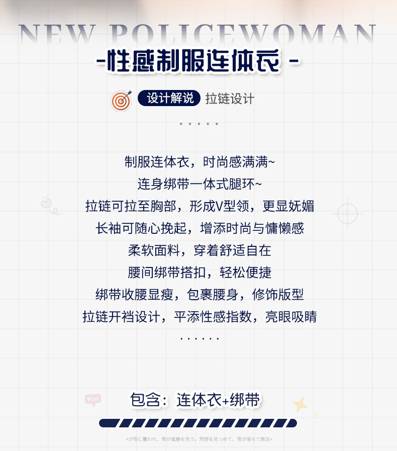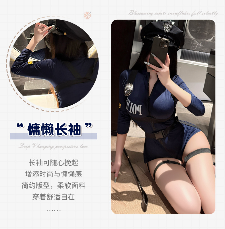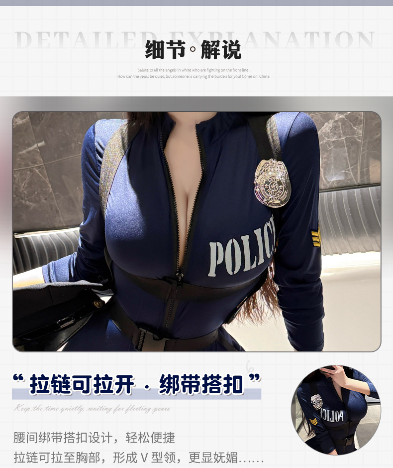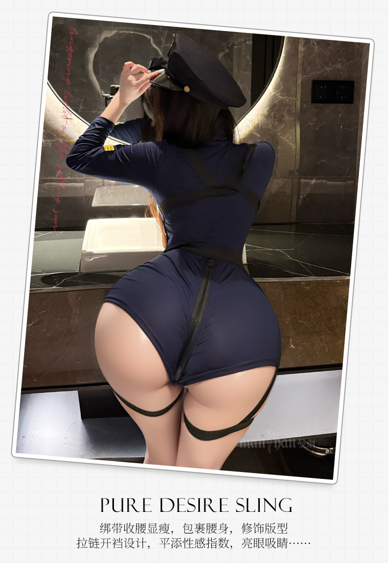曼烟情趣内衣女性感紧身警官制服绑带拉链开档连体衣睡衣100546