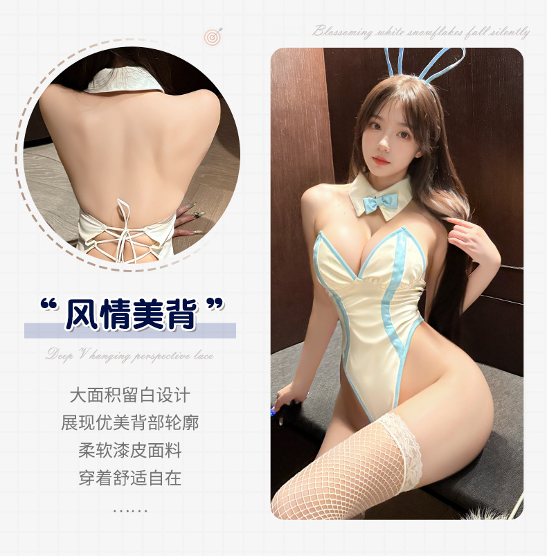 曼烟情趣内衣女性感美背绑带紧身深v兔女郎制服开裆连体衣100500