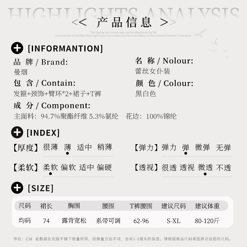 成为第一个“曼烟情趣内衣女性感花边蕾丝交叉绑带睡裙系带温柔女仆制服100668” 的评价者