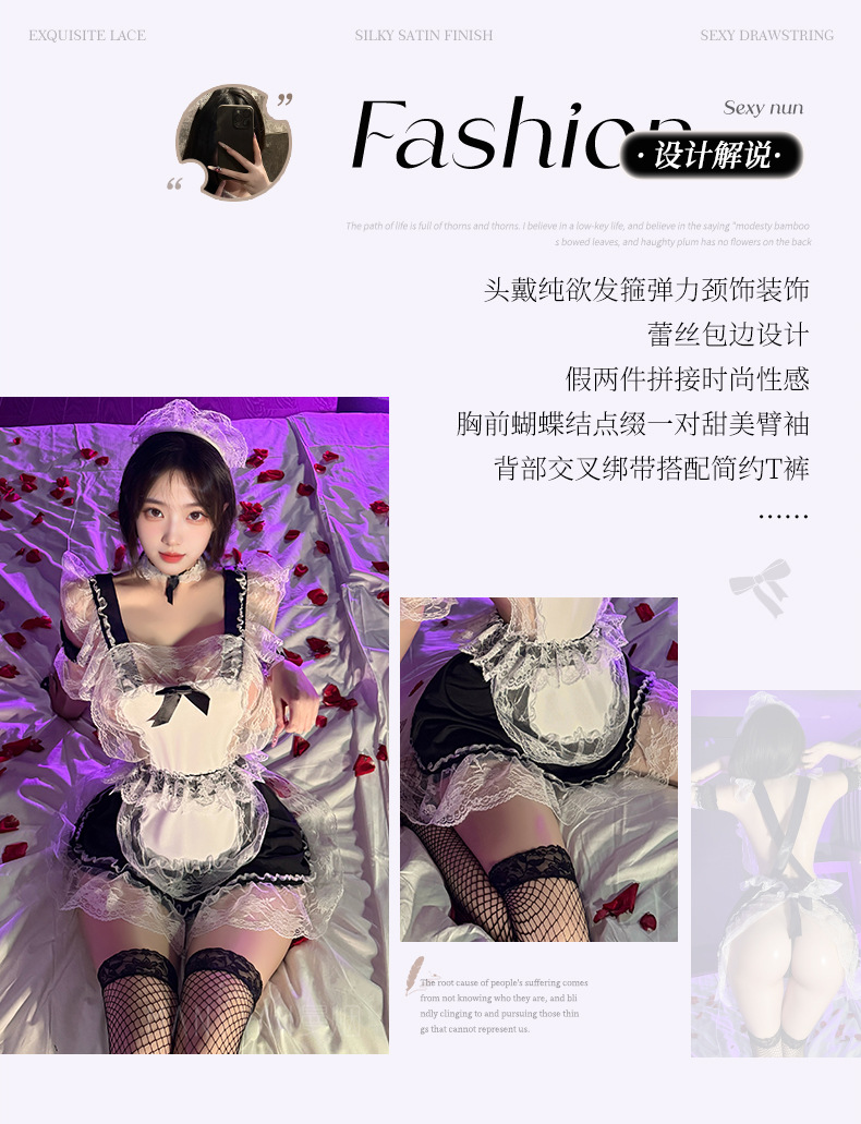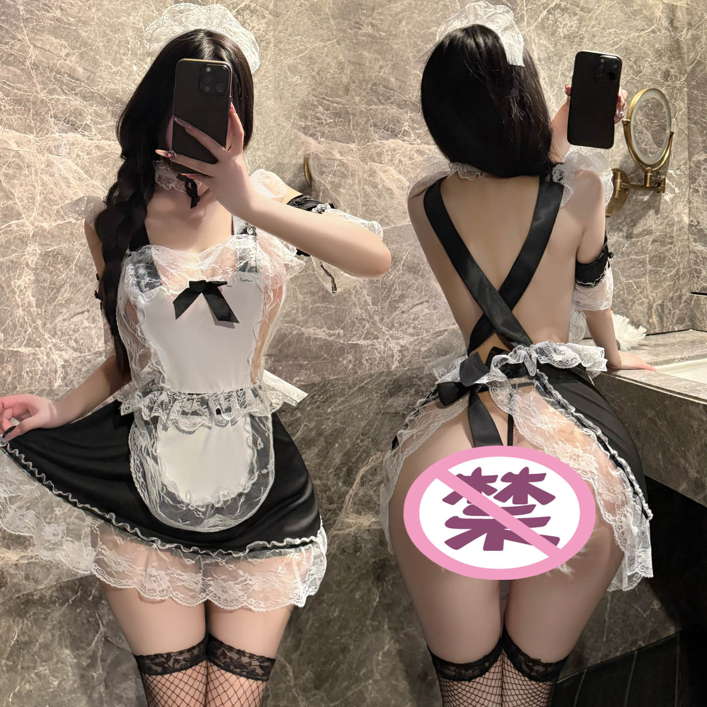 曼烟情趣内衣女性感花边蕾丝交叉绑带睡裙系带温柔女仆制服100668 数量