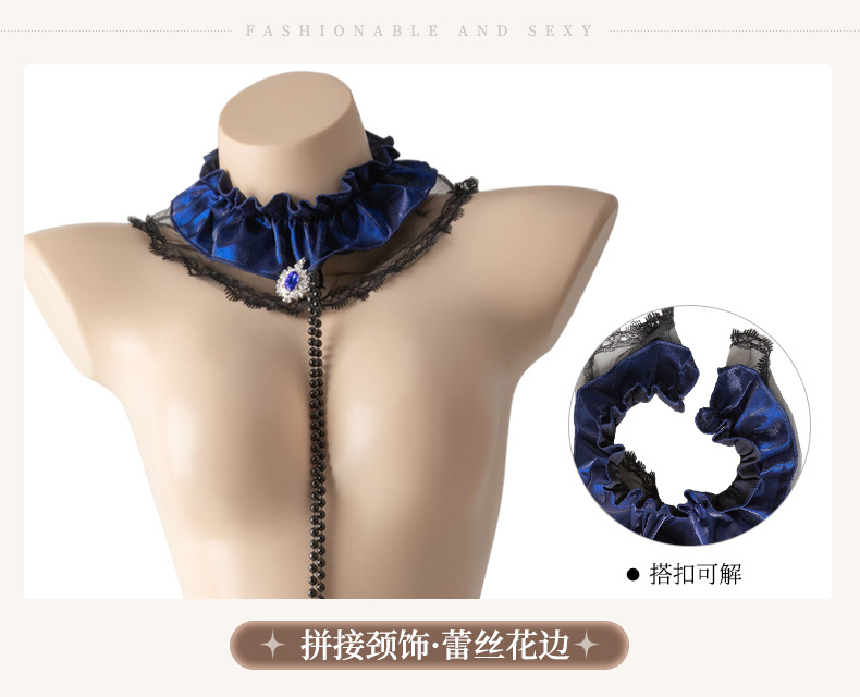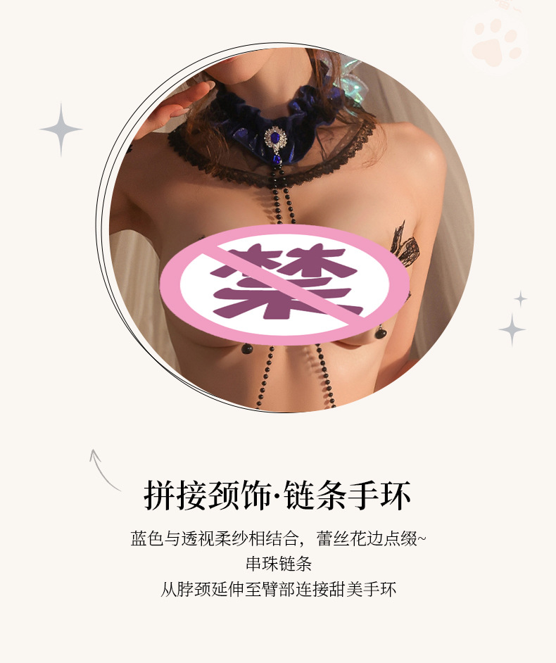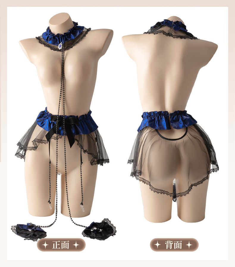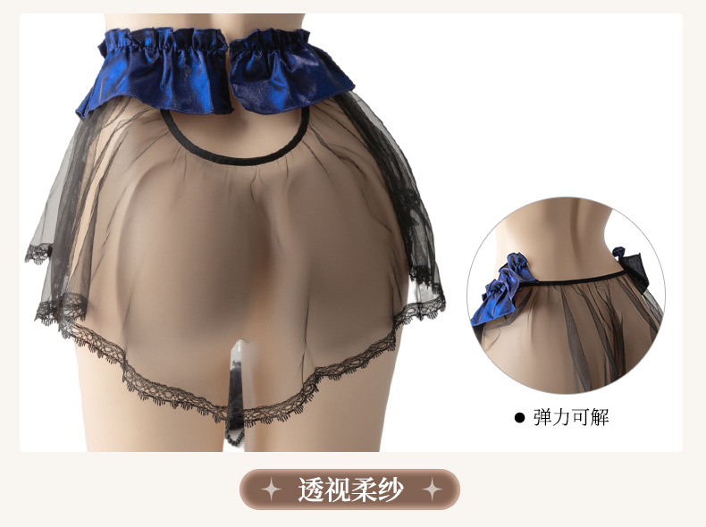 曼烟情趣内衣女性感蕾丝柔纱短裙串珠三点式透视制服套装100603