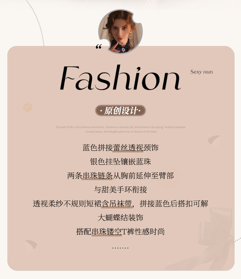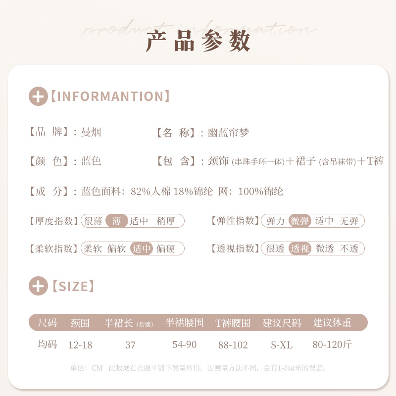 成为第一个“曼烟情趣内衣女性感蕾丝柔纱短裙串珠三点式透视制服套装100603” 的评价者