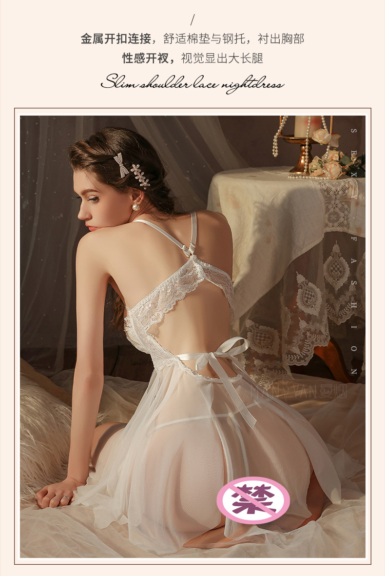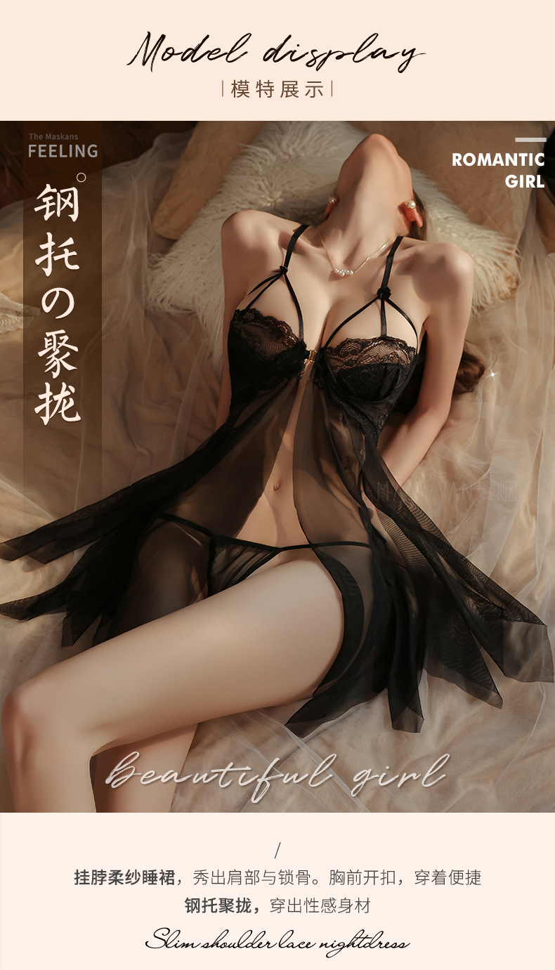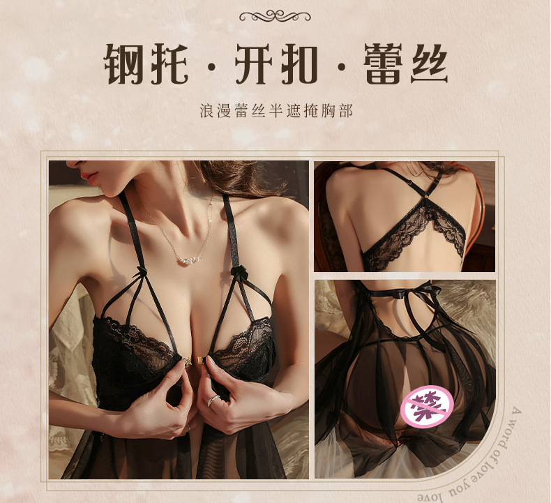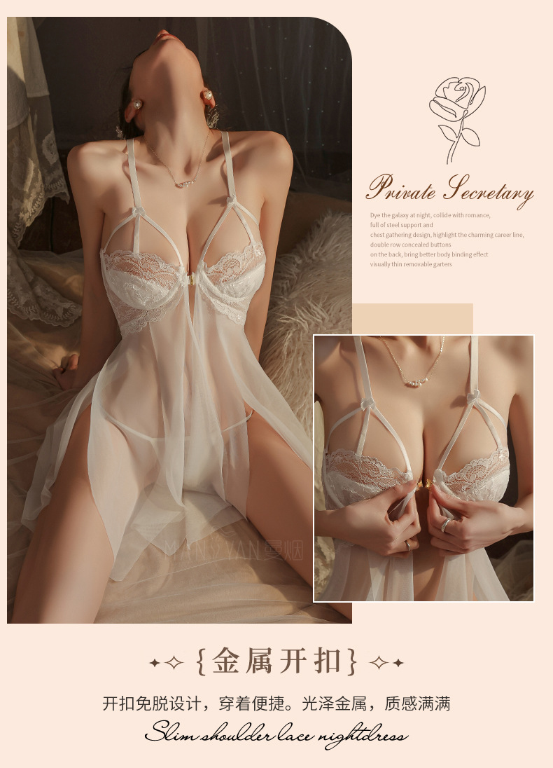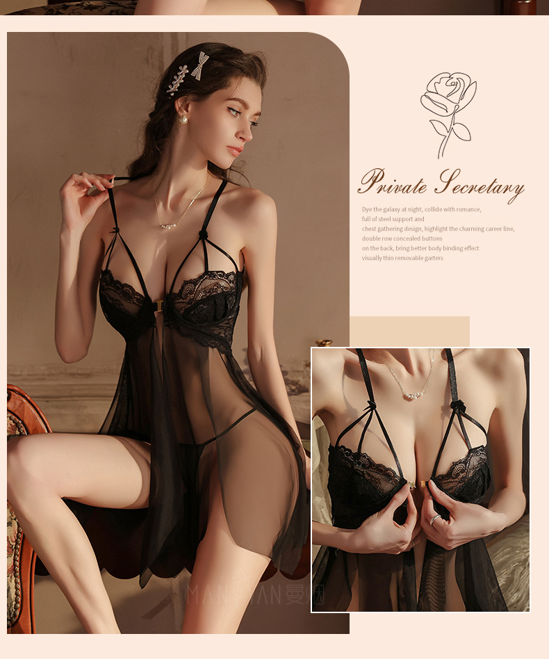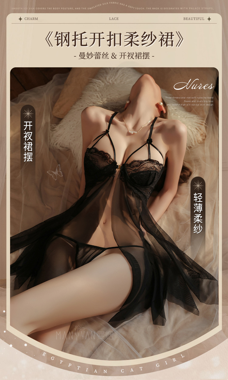 曼烟情趣内衣女性感钢托聚拢半镂空透视轻薄柔纱开衩睡裙睡衣9273