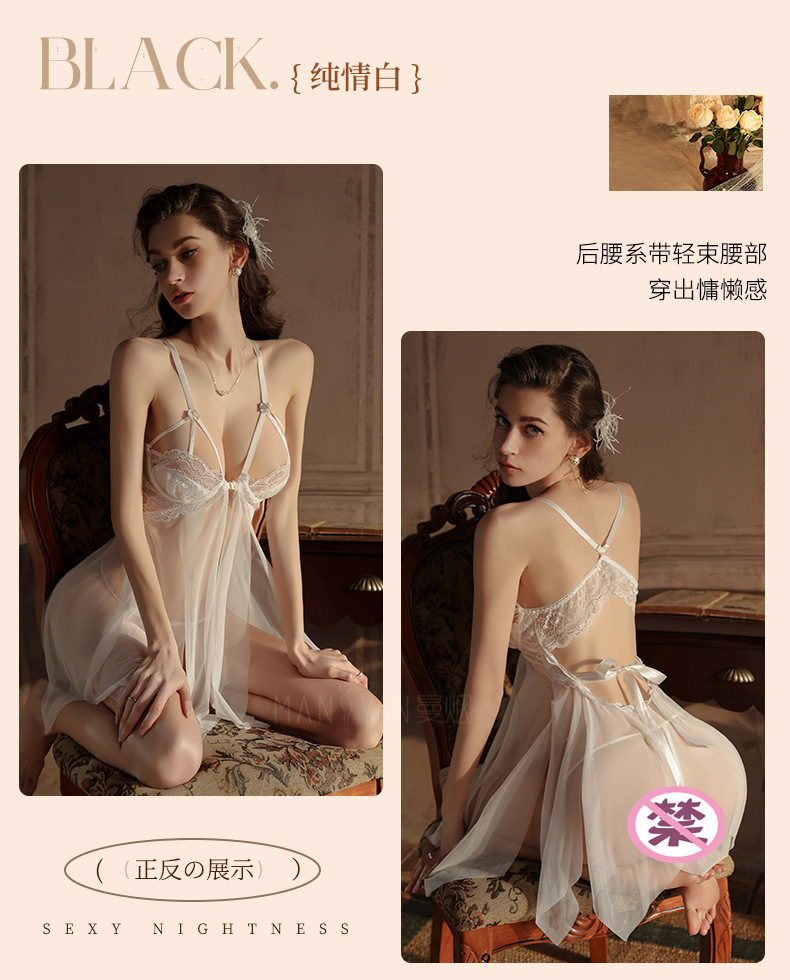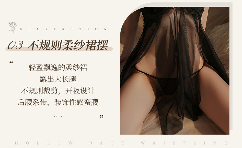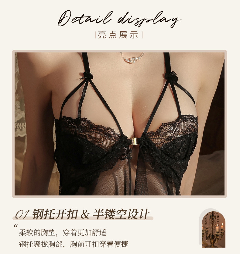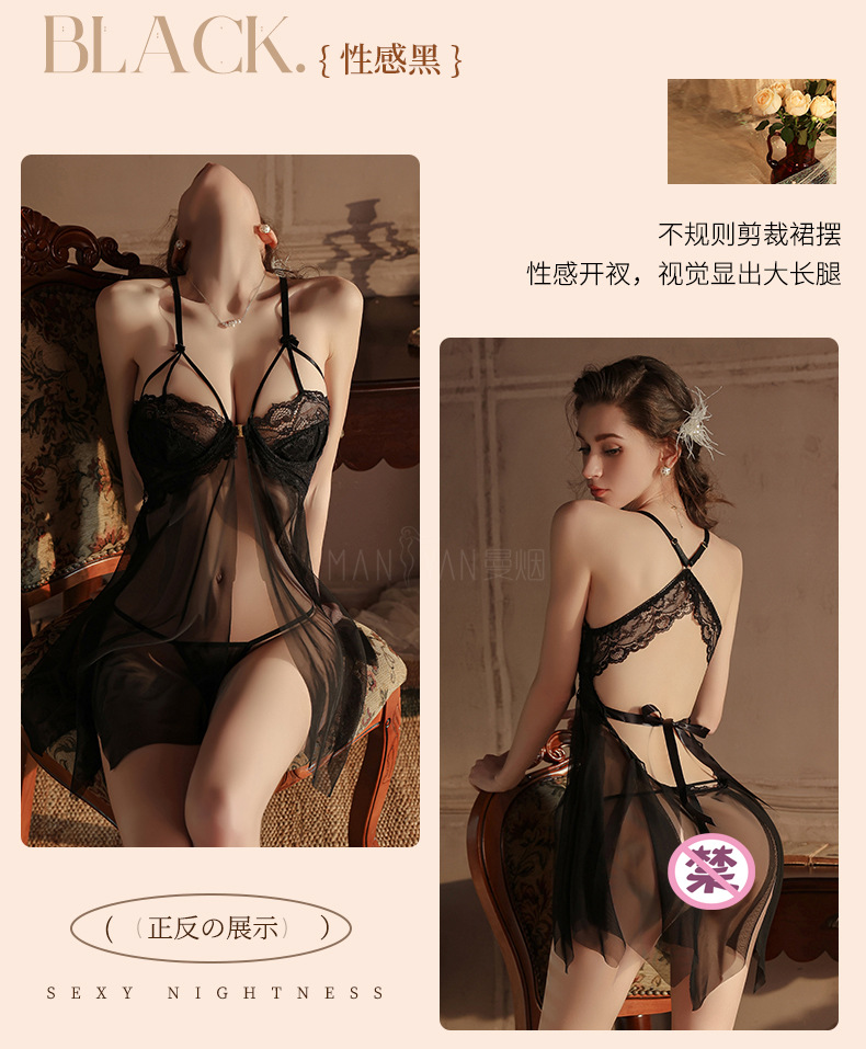 曼烟情趣内衣女性感钢托聚拢半镂空透视轻薄柔纱开衩睡裙睡衣9273 数量