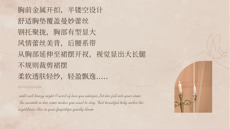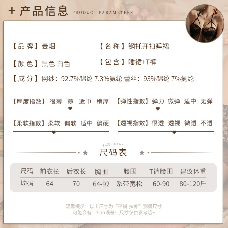 成为第一个“曼烟情趣内衣女性感钢托聚拢半镂空透视轻薄柔纱开衩睡裙睡衣9273” 的评价者