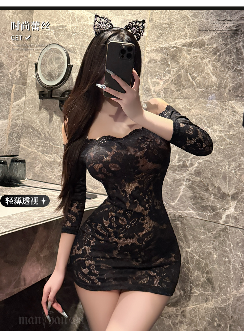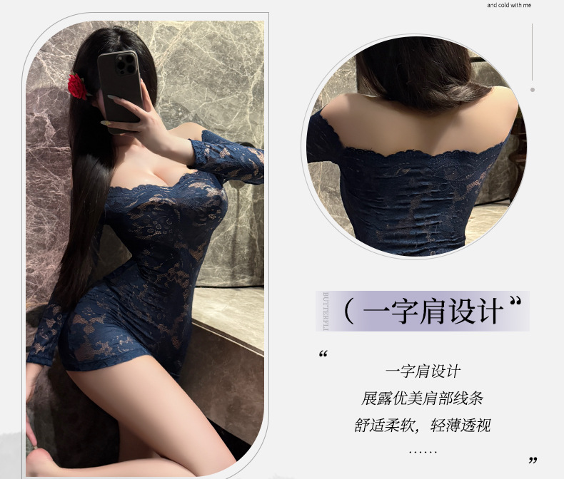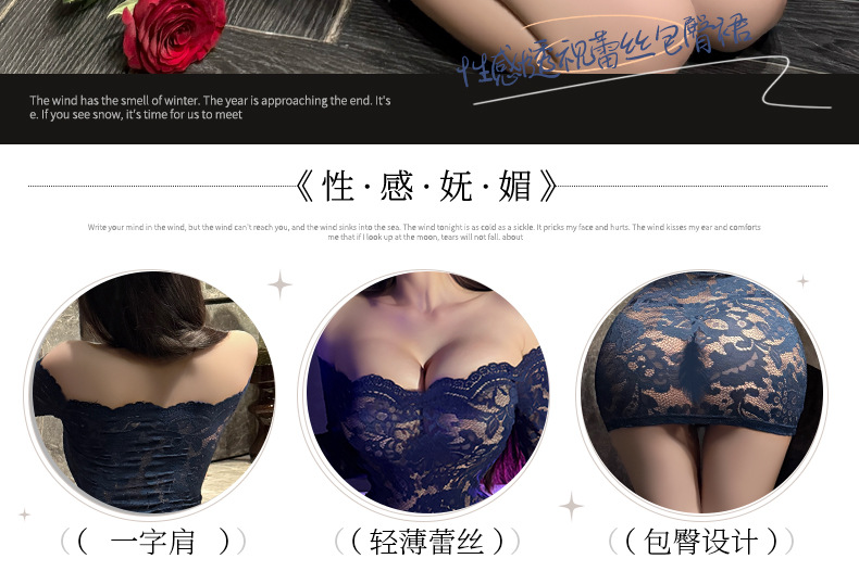 曼烟情趣内衣女蕾丝包臀裙制服性感一字肩透视火辣秘书套装100217