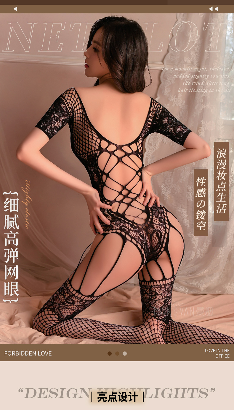 曼烟情趣内衣性感中袖开档交叉花纹镂空连体网衣渔网连身网袜7952 数量